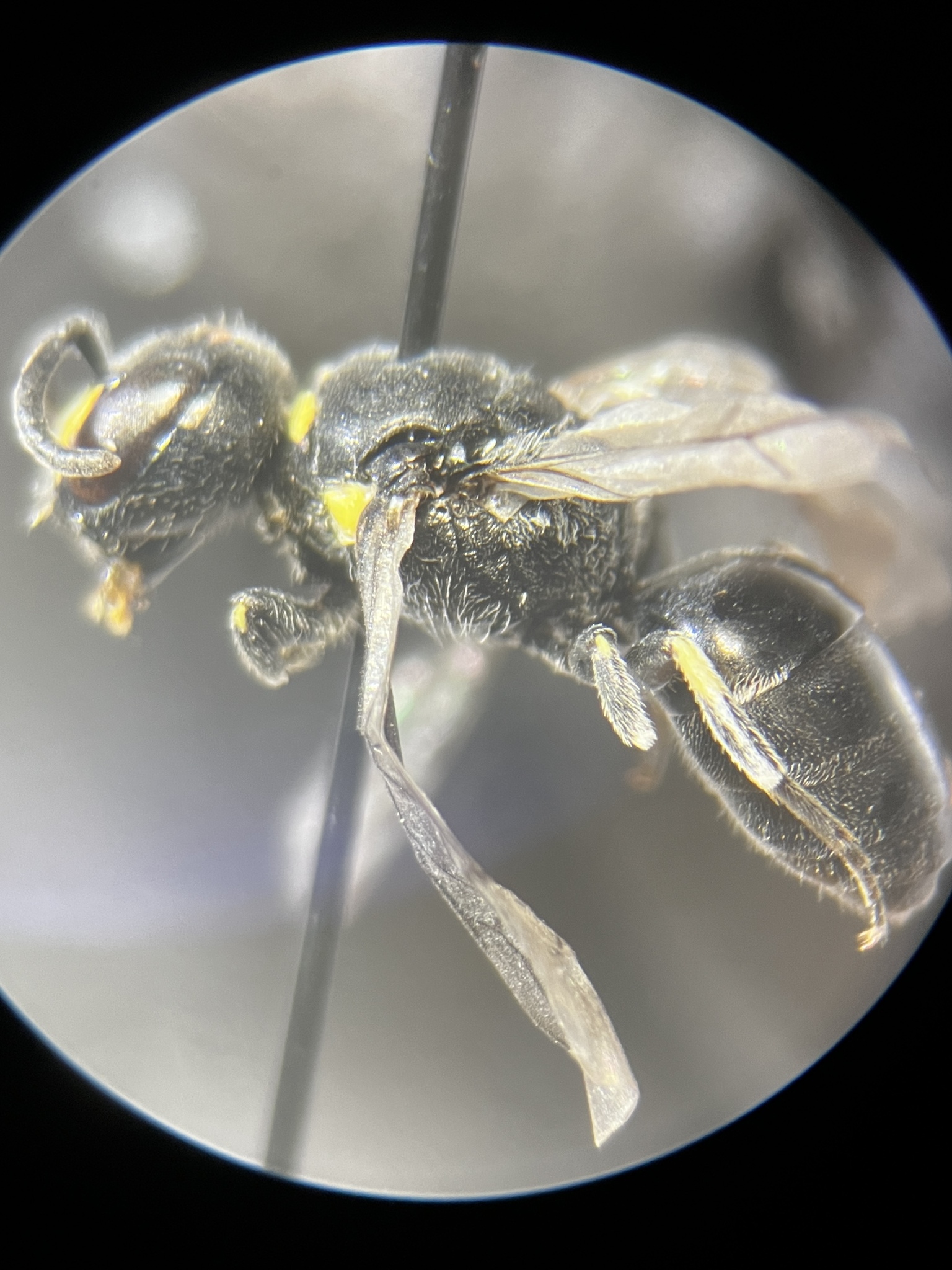Hylaeus sparsus | species | Thaspium trifoliatum | species | visitsFlowersOf | Animalia | Arthropoda | Insecta | Hymenoptera | Colletidae | Hylaeus | Plantae | Tracheophyta | Magnoliopsida | Apiales | Apiaceae | Thaspium | 37.778114 | -85.72617 | 2023 | 5 | 18 | http://creativecommons.org/licenses/by-nc/4.0/ | https://www.inaturalist.org/observations/164669259 | |