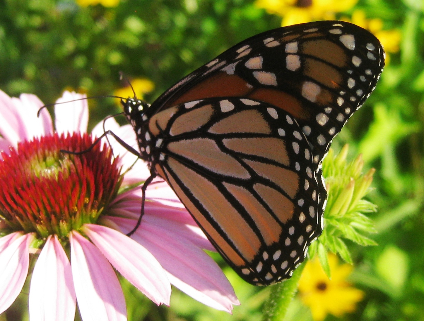 Danaus plexippus | species | Echinacea purpurea | species | visitsFlowersOf | Animalia | Arthropoda | Insecta | Lepidoptera | Nymphalidae | Danaus | Plantae | Tracheophyta | Magnoliopsida | Asterales | Asteraceae | Echinacea | 43.132339 | -72.525467 | 2013 | 7 | 18 | http://creativecommons.org/licenses/by-nc/4.0/ | https://www.inaturalist.org/observations/336545 | |