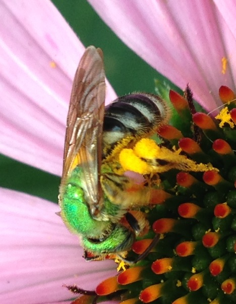 Agapostemon virescens | species | Echinacea purpurea | species | visitsFlowersOf | Animalia | Arthropoda | Insecta | Hymenoptera | Halictidae | Agapostemon | Plantae | Tracheophyta | Magnoliopsida | Asterales | Asteraceae | Echinacea | 40.509333 | -80.079 | 2013 | 7 | 7 | http://creativecommons.org/licenses/by-nc/4.0/ | https://www.inaturalist.org/observations/323815 | |