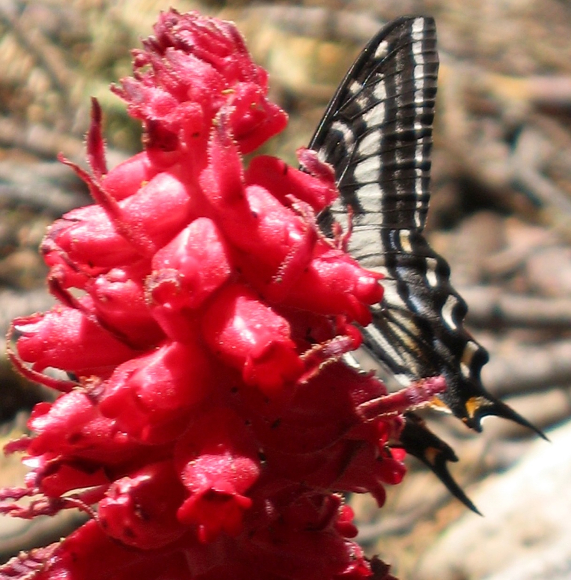 Papilio eurymedon | species | Sarcodes sanguinea | species | visitsFlowersOf | Animalia | Arthropoda | Insecta | Lepidoptera | Papilionidae | Papilio | Plantae | Tracheophyta | Magnoliopsida | Ericales | Ericaceae | Sarcodes | 39.626833 | -120.575667 | 2013 | 7 | 6 | http://creativecommons.org/licenses/by-nc/4.0/ | https://www.inaturalist.org/observations/324372 | |