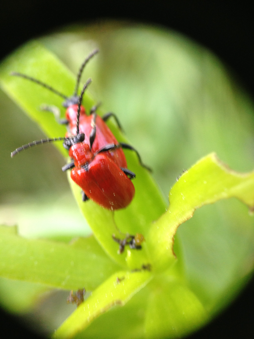 Lilioceris lilii | species | Lilium | genus | eats | Animalia | Arthropoda | Insecta | Coleoptera | Chrysomelidae | Lilioceris | Plantae | Tracheophyta | Liliopsida | Liliales | Liliaceae | Lilium | 44.318468 | -72.408033 | 2013 | 6 | 9 | http://creativecommons.org/licenses/by/4.0/ | https://www.inaturalist.org/observations/294837 | |