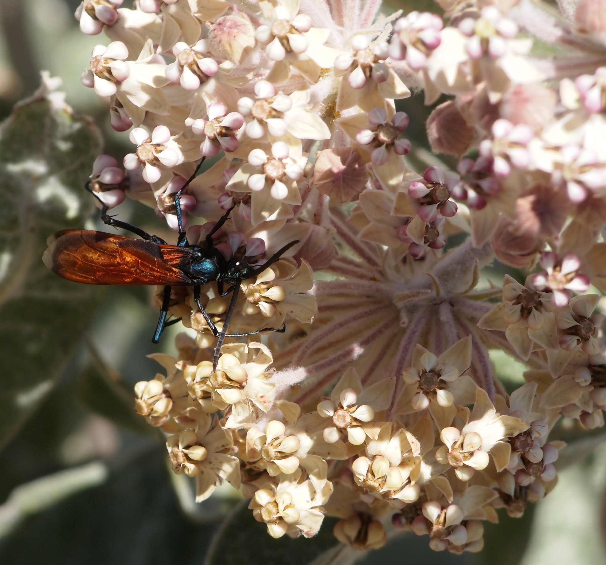 Pepsis | genus | Asclepias eriocarpa | species | visits | Animalia | Arthropoda | Insecta | Hymenoptera | Pompilidae | Pepsis | Plantae | Tracheophyta | Magnoliopsida | Gentianales | Apocynaceae | Asclepias | 36.76192 | -121.503454 | 2013 | 6 | 15 | http://creativecommons.org/licenses/by-nc/4.0/ | https://www.inaturalist.org/observations/302382 | |