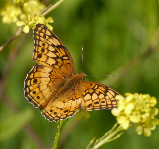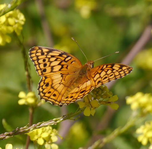 Euptoieta claudia | species | Rapistrum rugosum | species | interactsWith | Animalia | Arthropoda | Insecta | Lepidoptera | Nymphalidae | Euptoieta | Plantae | Tracheophyta | Magnoliopsida | Brassicales | Brassicaceae | Rapistrum | 32.885438 | -97.282294 | 2013 | 4 | 16 | http://creativecommons.org/licenses/by-nc/4.0/ | https://www.inaturalist.org/observations/238476 | |