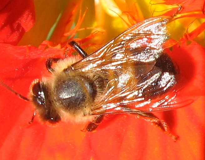 Apis mellifera | species | Tropaeolum | genus | visitsFlowersOf | Animalia | Arthropoda | Insecta | Hymenoptera | Apidae | Apis | Plantae | Tracheophyta | Magnoliopsida | Brassicales | Tropaeolaceae | Tropaeolum | 44.481042 | -77.317491 | 2024 | 10 | 8 | http://creativecommons.org/licenses/by-nc/4.0/ | https://www.inaturalist.org/observations/246499299 | |