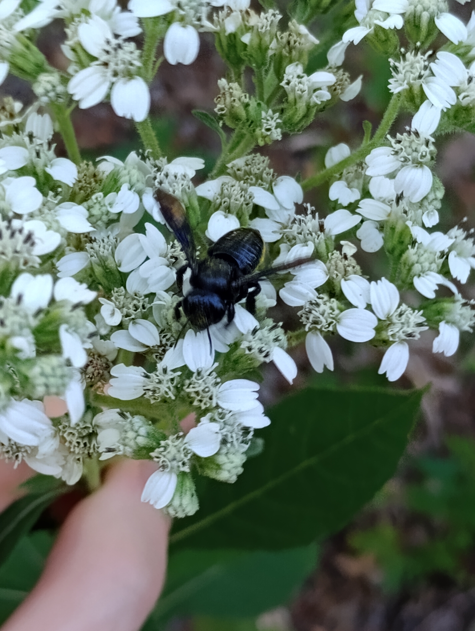 Megachile xylocopoides | species | Verbesina virginica | species | interactsWith | Animalia | Arthropoda | Insecta | Hymenoptera | Megachilidae | Megachile | Plantae | Tracheophyta | Magnoliopsida | Asterales | Asteraceae | Verbesina | 33.452427 | -88.784706 | 2024 | 10 | 8 | http://creativecommons.org/licenses/by-nc/4.0/ | https://www.inaturalist.org/observations/246501756 |