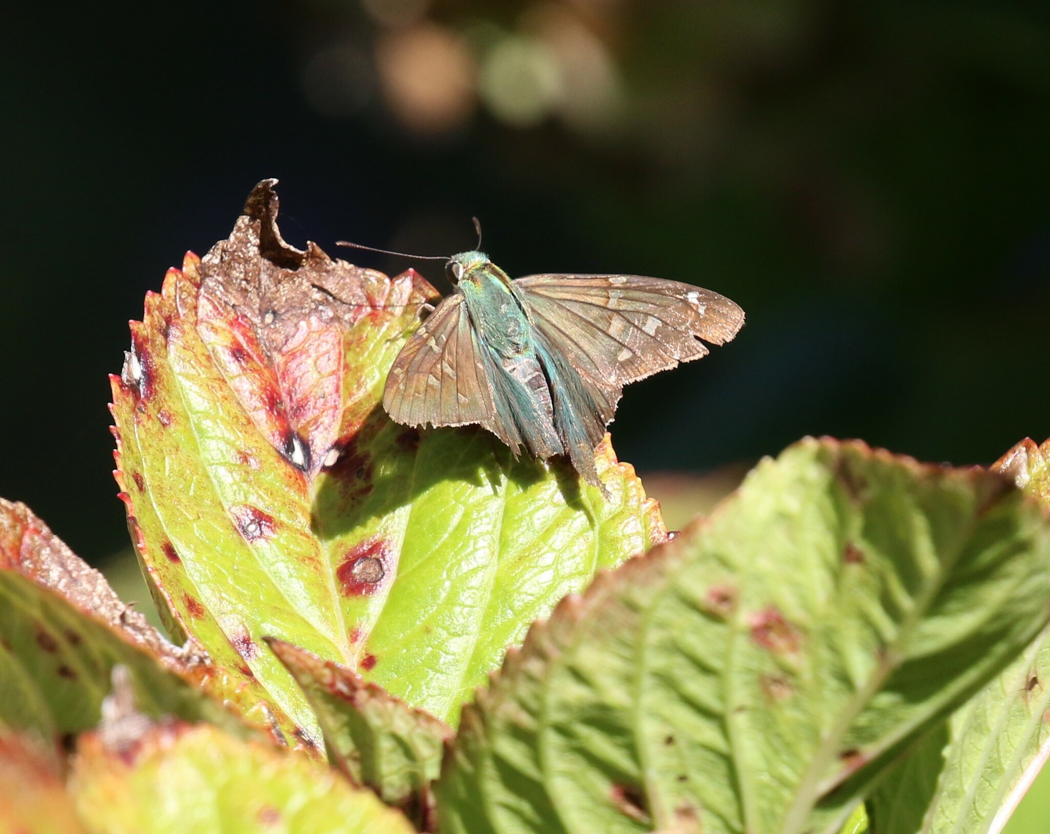 Urbanus proteus | species | Hydrangea | genus | visits | Animalia | Arthropoda | Insecta | Lepidoptera | Hesperiidae | Urbanus | Plantae | Tracheophyta | Magnoliopsida | Cornales | Hydrangeaceae | Hydrangea | 38.933348 | -74.9652 | 2024 | 10 | 8 | http://creativecommons.org/licenses/by-nc/4.0/ | https://www.inaturalist.org/observations/246524261 | |