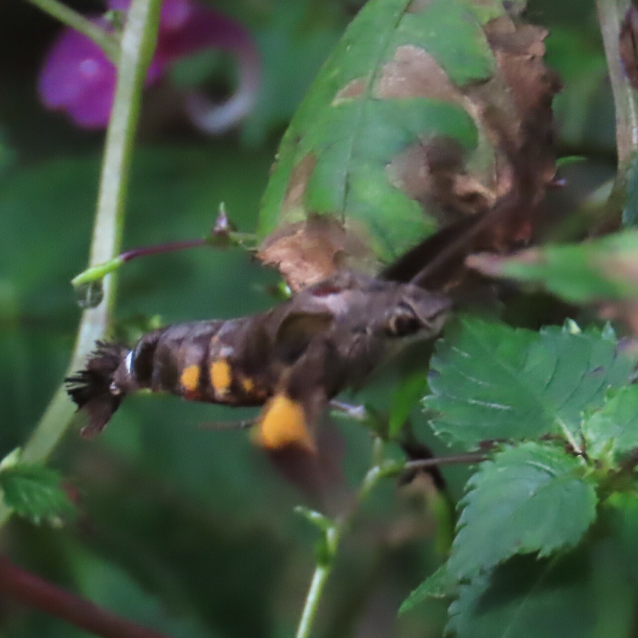 Macroglossum pyrrhosticta | species | Impatiens textorii | species | eats | Animalia | Arthropoda | Insecta | Lepidoptera | Sphingidae | Macroglossum | Plantae | Tracheophyta | Magnoliopsida | Ericales | Balsaminaceae | Impatiens | 35.532347 | 127.950177 | 2024 | 10 | 5 | http://creativecommons.org/licenses/by-nc/4.0/ | https://www.inaturalist.org/observations/246441284 | |