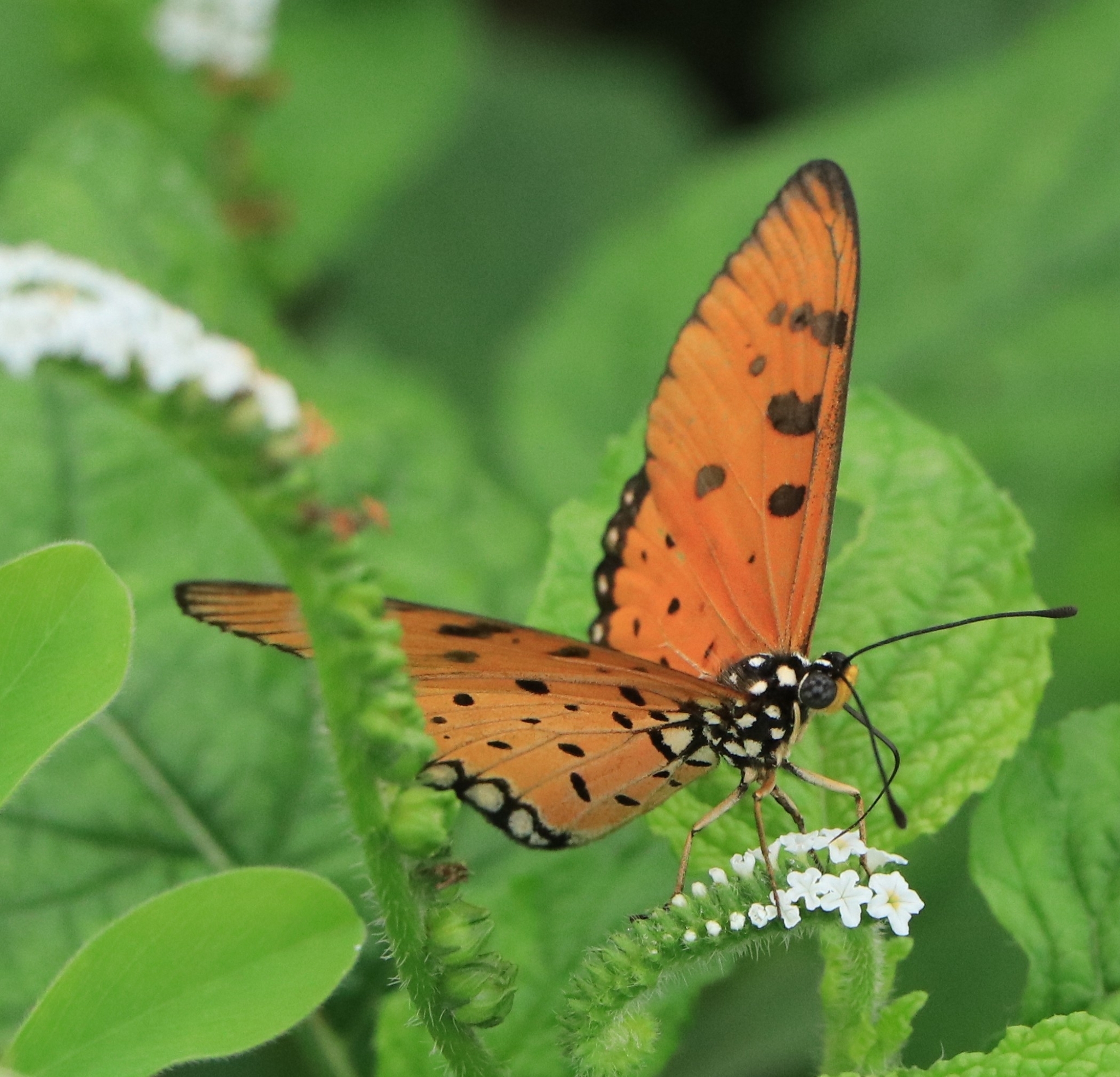 Acraea terpsicore | species | Heliotropium indicum | species | eats | Animalia | Arthropoda | Insecta | Lepidoptera | Nymphalidae | Acraea | Plantae | Tracheophyta | Magnoliopsida | Boraginales | Heliotropiaceae | Heliotropium | 11.944684 | 75.384938 | 2024 | 5 | 28 | http://creativecommons.org/licenses/by/4.0/ | https://www.inaturalist.org/observations/246442076 | |