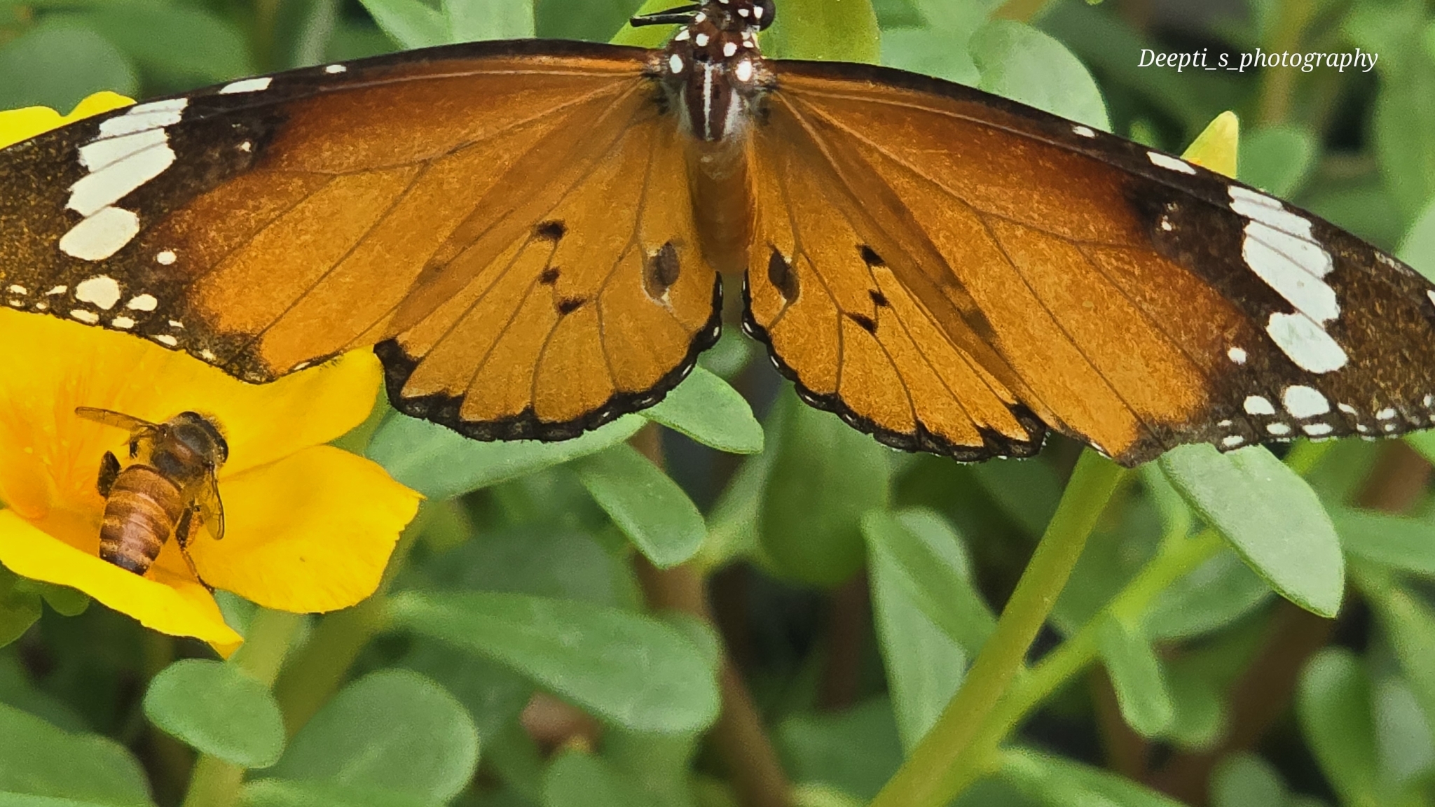 Danaus chrysippus | species | Portulaca | genus | eats | Animalia | Arthropoda | Insecta | Lepidoptera | Nymphalidae | Danaus | Plantae | Tracheophyta | Magnoliopsida | Caryophyllales | Portulacaceae | Portulaca | 21.19383 | 81.350941 | 2024 | 6 | 25 | http://creativecommons.org/licenses/by-nc/4.0/ | https://www.inaturalist.org/observations/246443018 | |