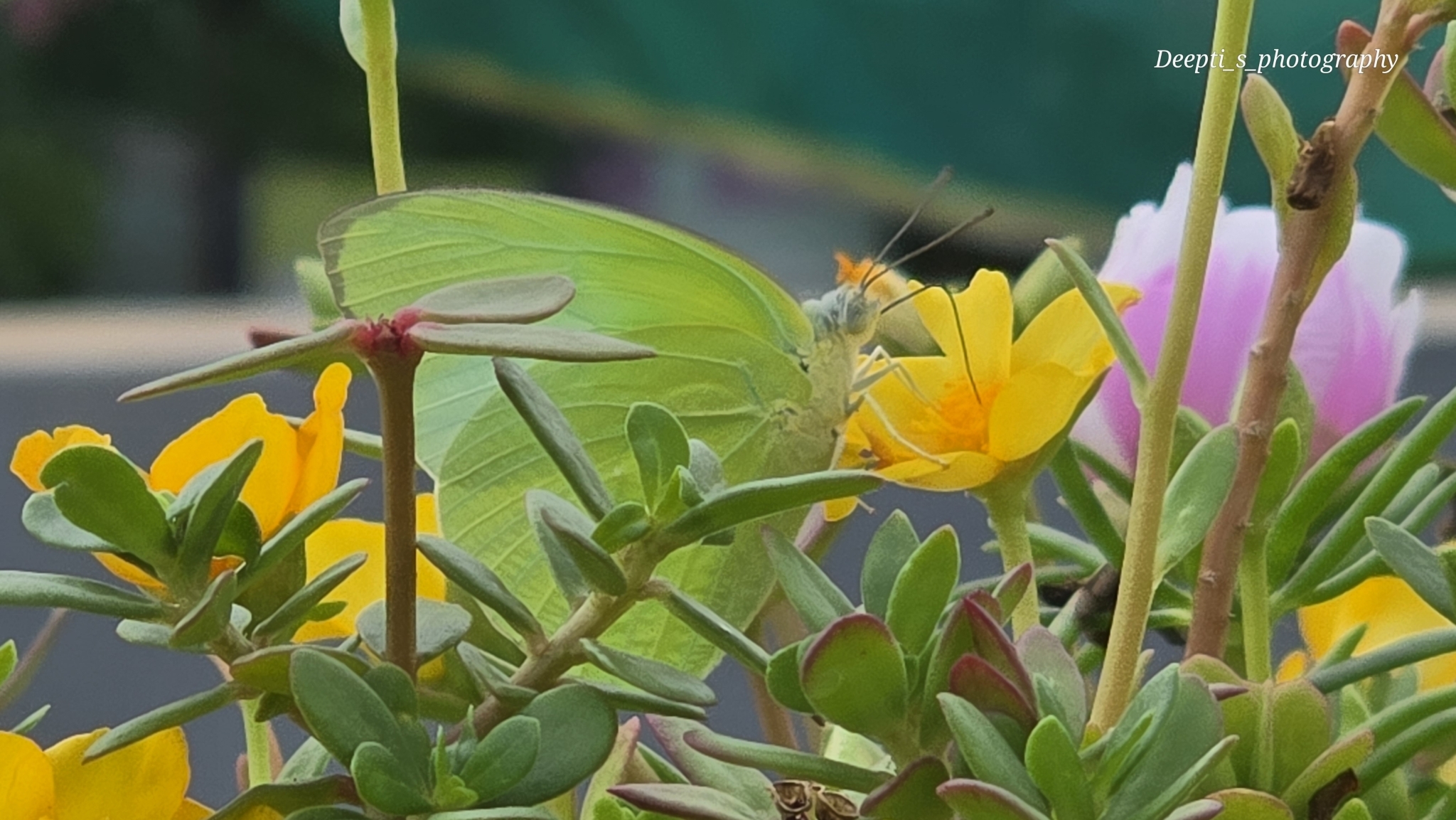 Catopsilia pomona | species | Portulaca | genus | eats | Animalia | Arthropoda | Insecta | Lepidoptera | Pieridae | Catopsilia | Plantae | Tracheophyta | Magnoliopsida | Caryophyllales | Portulacaceae | Portulaca | 21.19383 | 81.350941 | 2024 | 6 | 24 | http://creativecommons.org/licenses/by-nc/4.0/ | https://www.inaturalist.org/observations/246443336 | |