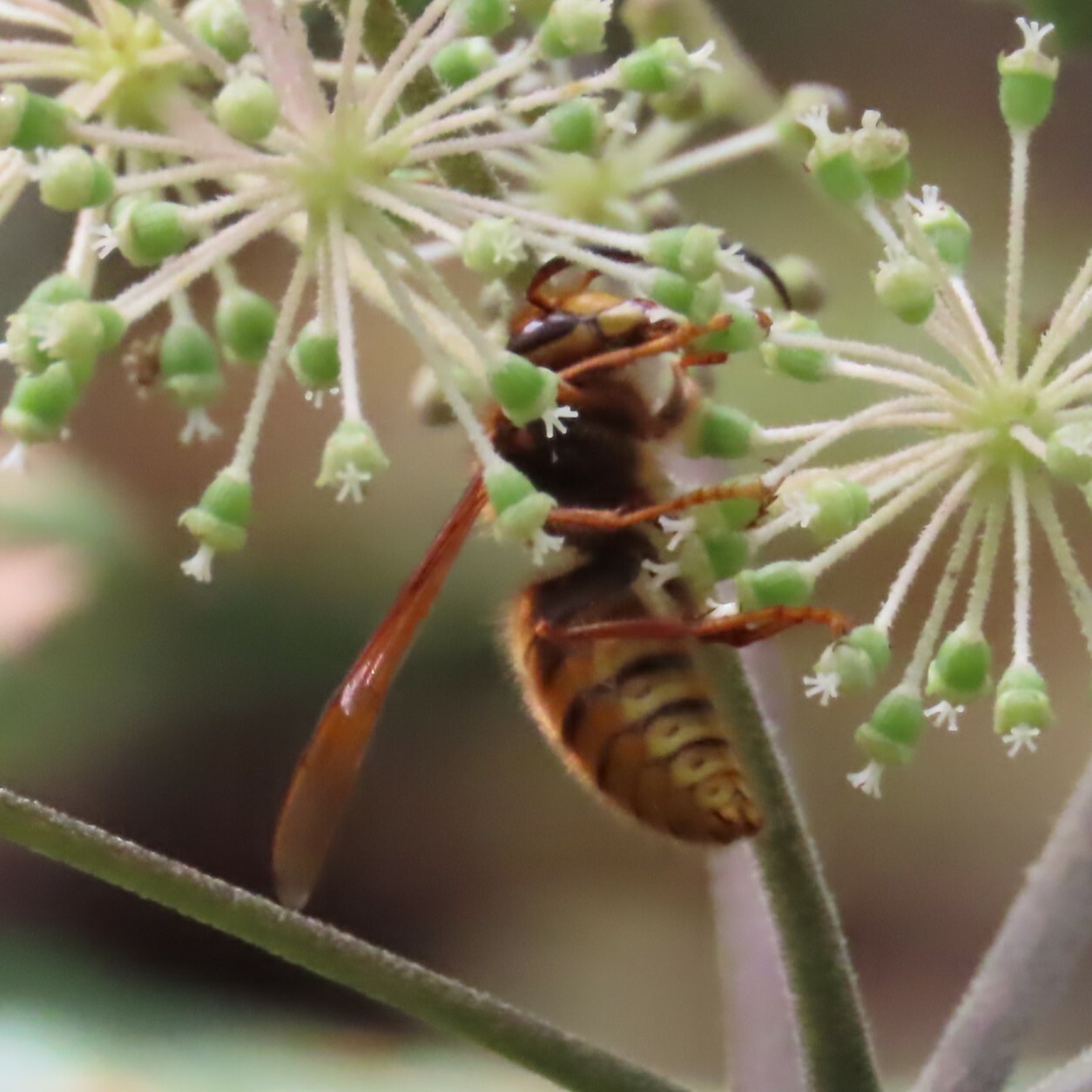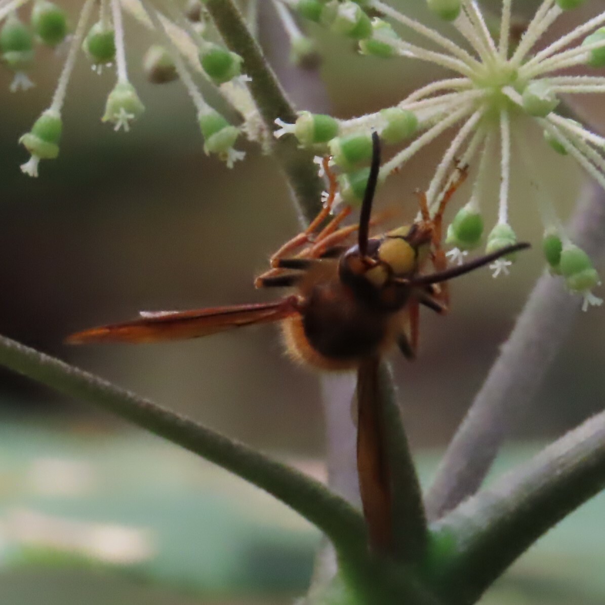 Vespa simillima | species | Aralia continentalis | species | eats | Animalia | Arthropoda | Insecta | Hymenoptera | Vespidae | Vespa | Plantae | Tracheophyta | Magnoliopsida | Apiales | Araliaceae | Aralia | 35.53171 | 127.950155 | 2024 | 10 | 5 | http://creativecommons.org/licenses/by-nc/4.0/ | https://www.inaturalist.org/observations/246462217 | |