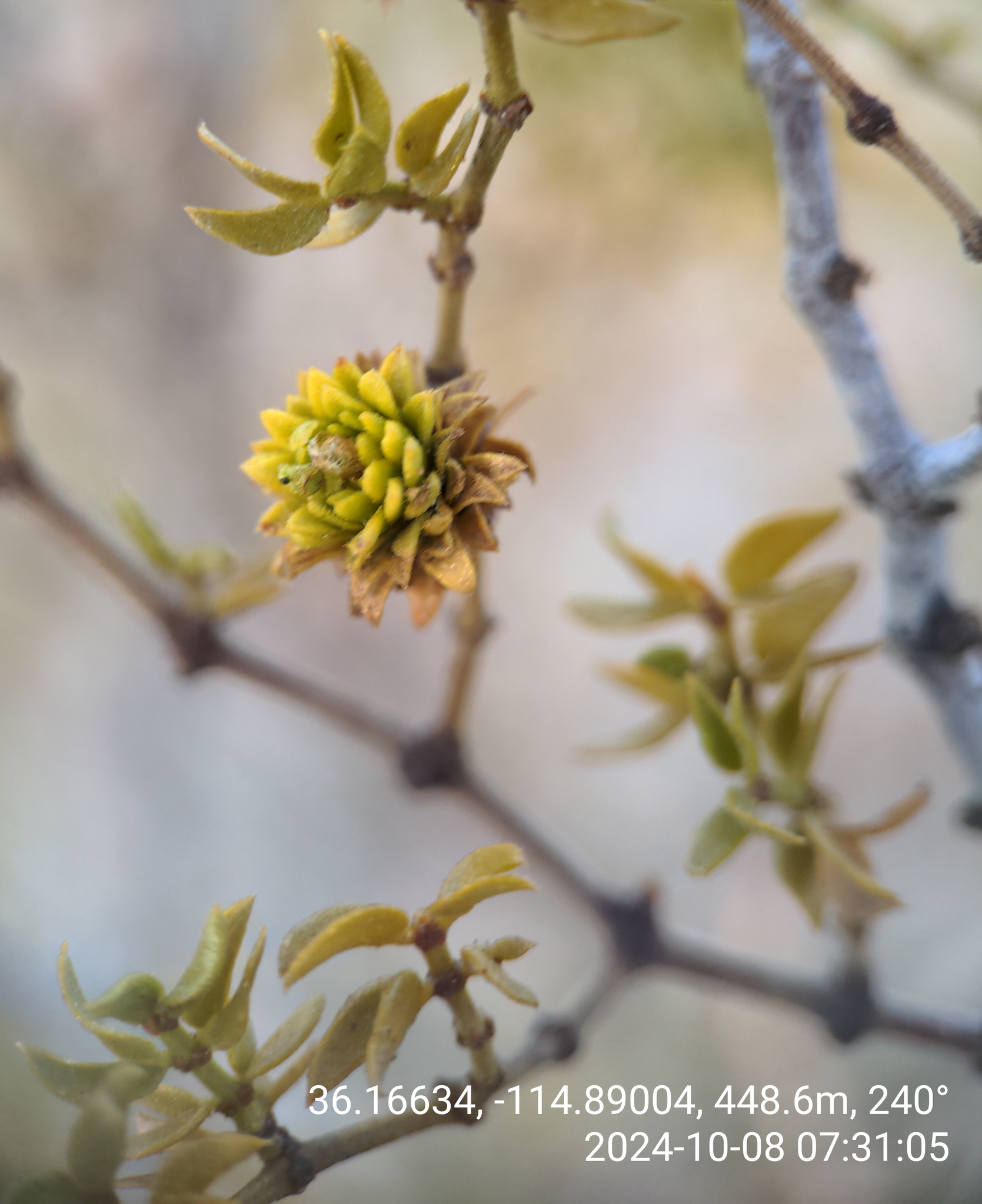 Asphondylia rosetta | species | Larrea tridentata | species | interactsWith | Animalia | Arthropoda | Insecta | Diptera | Cecidomyiidae | Asphondylia | Plantae | Tracheophyta | Magnoliopsida | Zygophyllales | Zygophyllaceae | Larrea | 36.166335 | -114.89005 | 2024 | 10 | 8 | http://creativecommons.org/licenses/by-nc/4.0/ | https://www.inaturalist.org/observations/246478651 | |