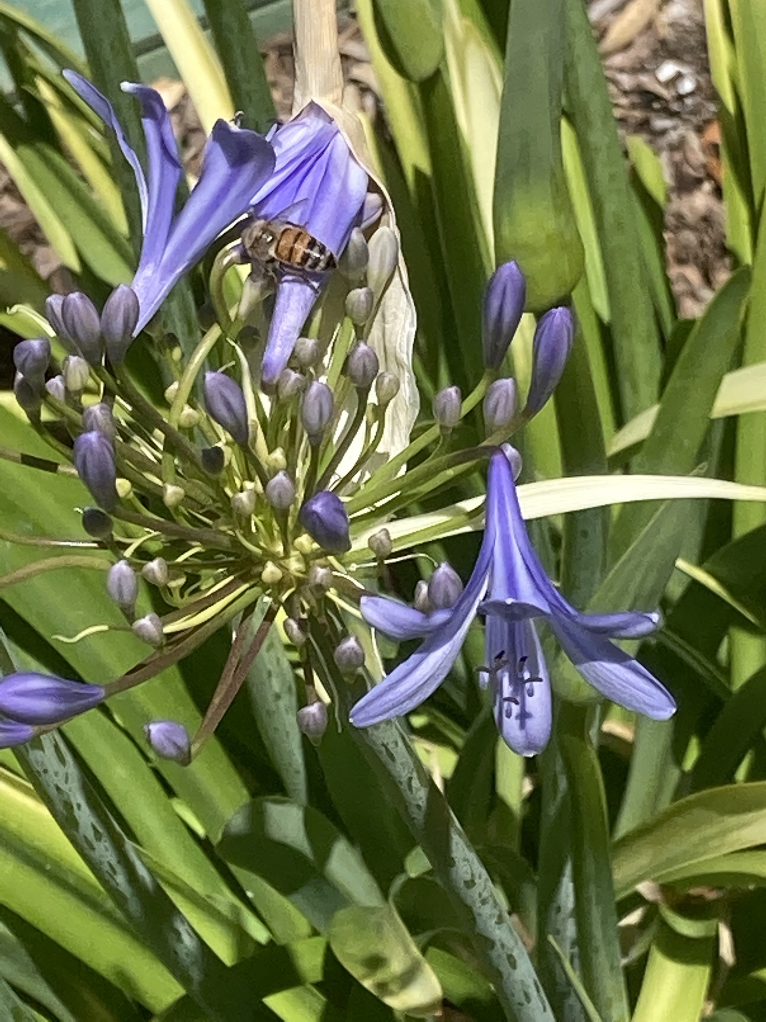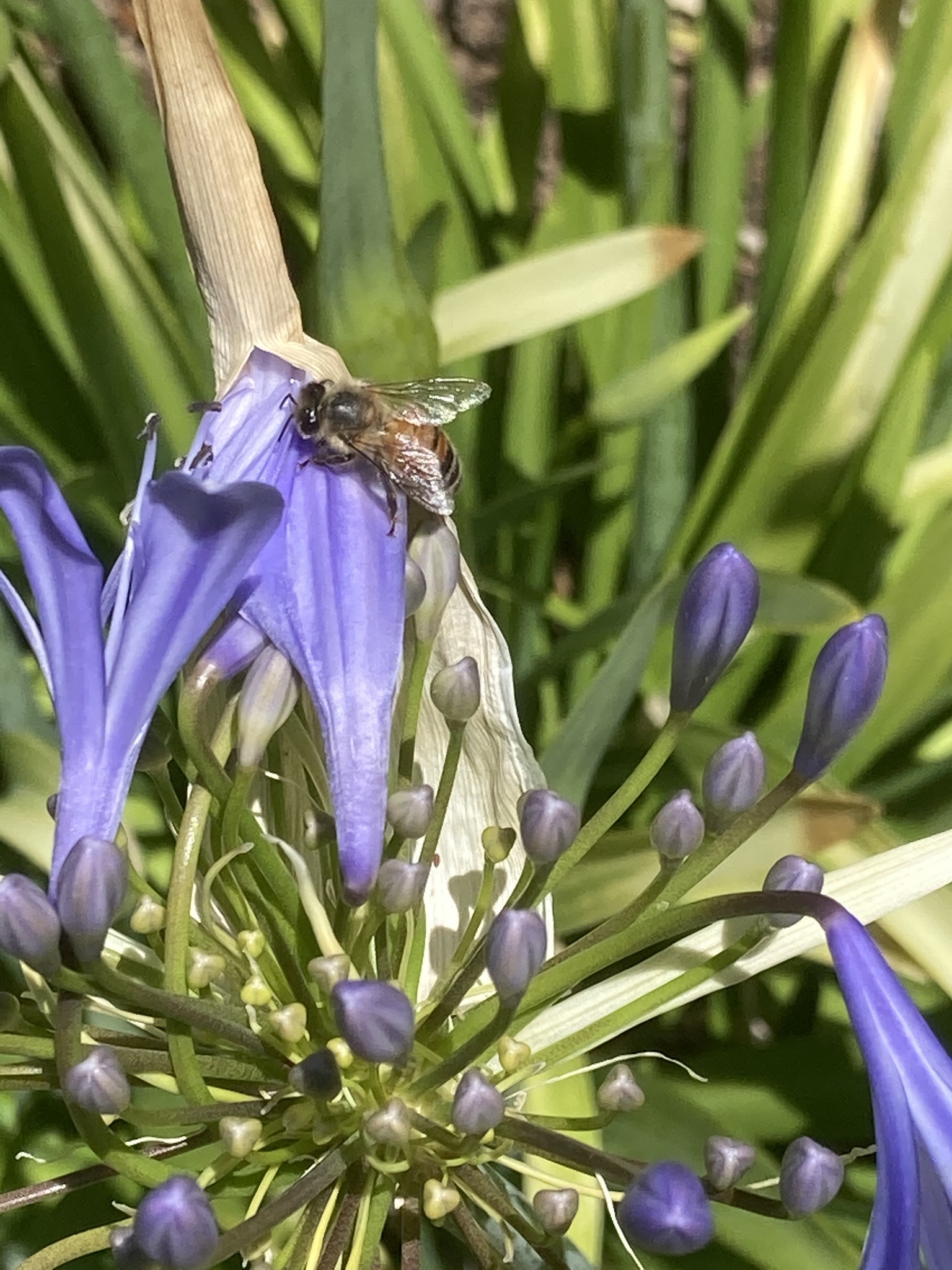 Apis mellifera | species | Agapanthus | genus | eats | Animalia | Arthropoda | Insecta | Hymenoptera | Apidae | Apis | Plantae | Tracheophyta | Liliopsida | Asparagales | Amaryllidaceae | Agapanthus | 37.364705 | -121.912982 | 2021 | 6 | 11 | http://creativecommons.org/licenses/by-nc/4.0/ | https://www.inaturalist.org/observations/82602726 | |