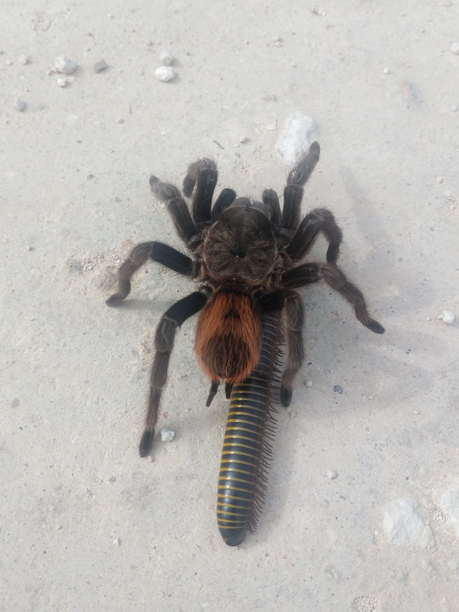 Tliltocatl epicureanus | species | Diplopoda | class | preysOn | Animalia | Arthropoda | Arachnida | Araneae | Theraphosidae | Tliltocatl | Animalia | Arthropoda | Diplopoda | null | null | null | 19.843967 | -88.025686 | 2020 | 6 | 24 | http://creativecommons.org/licenses/by-nc/4.0/ | https://www.inaturalist.org/observations/82486280 | |