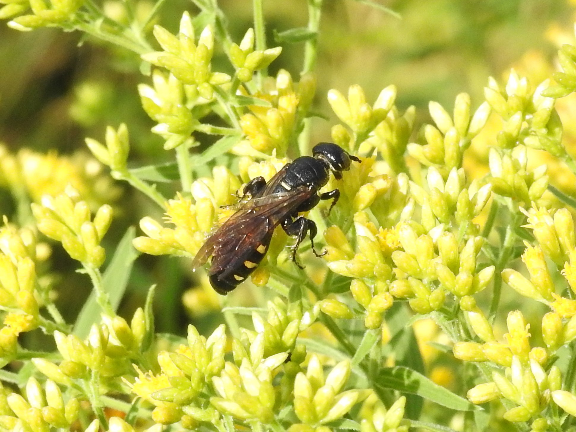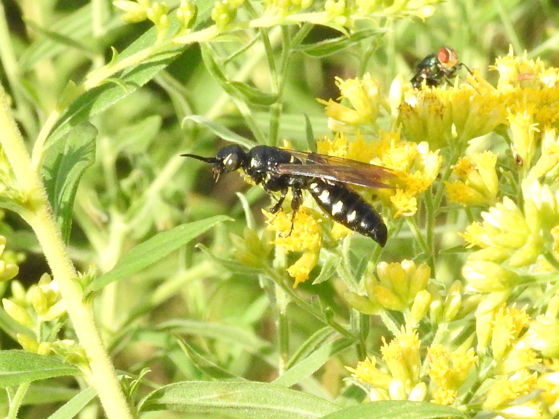 Myzinum obscurum | species | Solidago | genus | eats | Animalia | Arthropoda | Insecta | Hymenoptera | Tiphiidae | Myzinum | Plantae | Tracheophyta | Magnoliopsida | Asterales | Asteraceae | Solidago | 39.278676 | -84.593638 | 2018 | 9 | 2 | http://creativecommons.org/licenses/by-nc/4.0/ | https://www.inaturalist.org/observations/82501266 | |