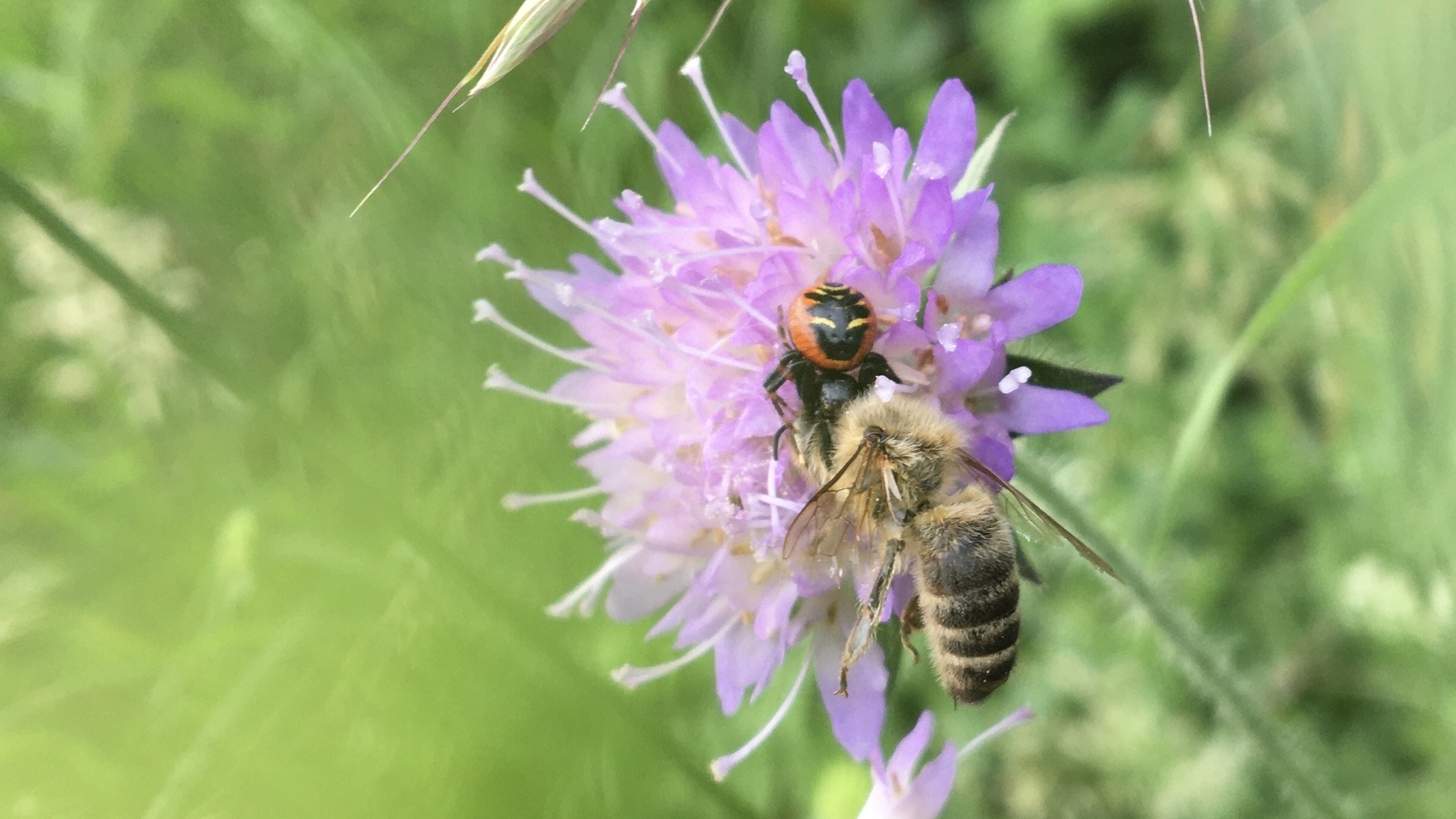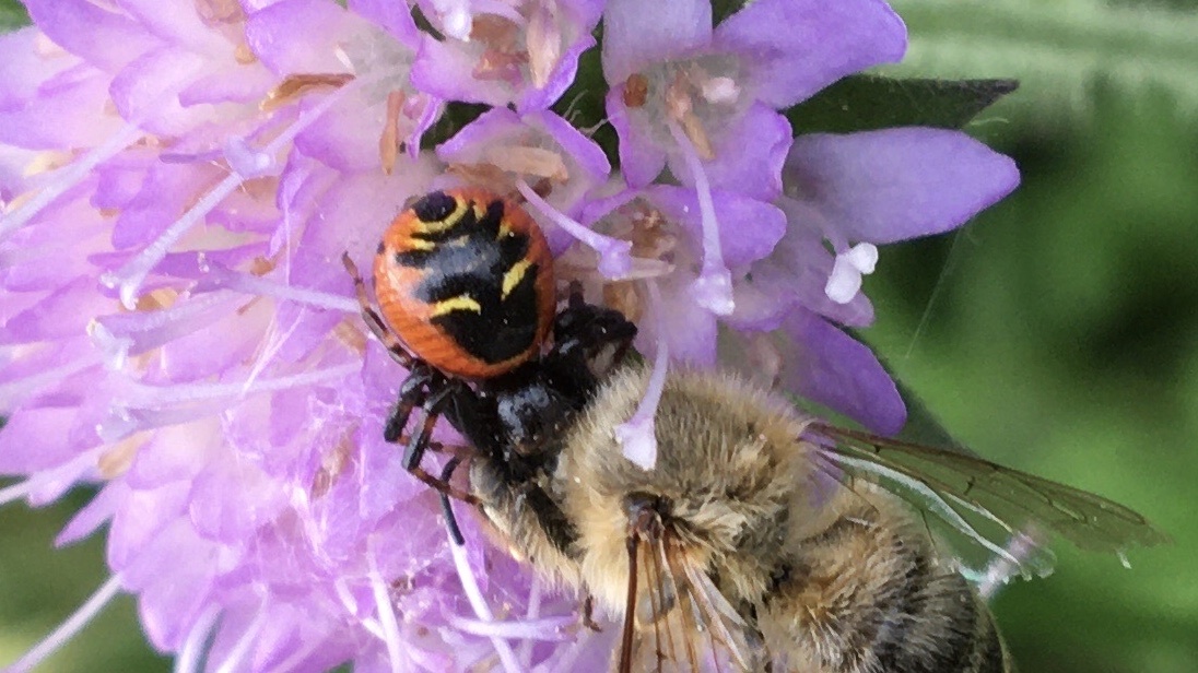 Synema globosum | species | Apis mellifera | species | eats | Animalia | Arthropoda | Arachnida | Araneae | Thomisidae | Synema | Animalia | Arthropoda | Insecta | Hymenoptera | Apidae | Apis | 47.712812 | 7.638447 | 2021 | 6 | 7 | http://creativecommons.org/licenses/by/4.0/ | https://www.inaturalist.org/observations/82500666 | |
