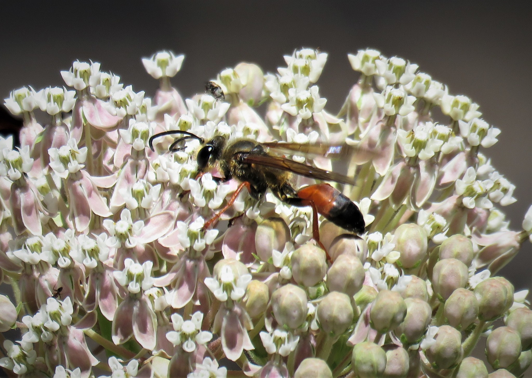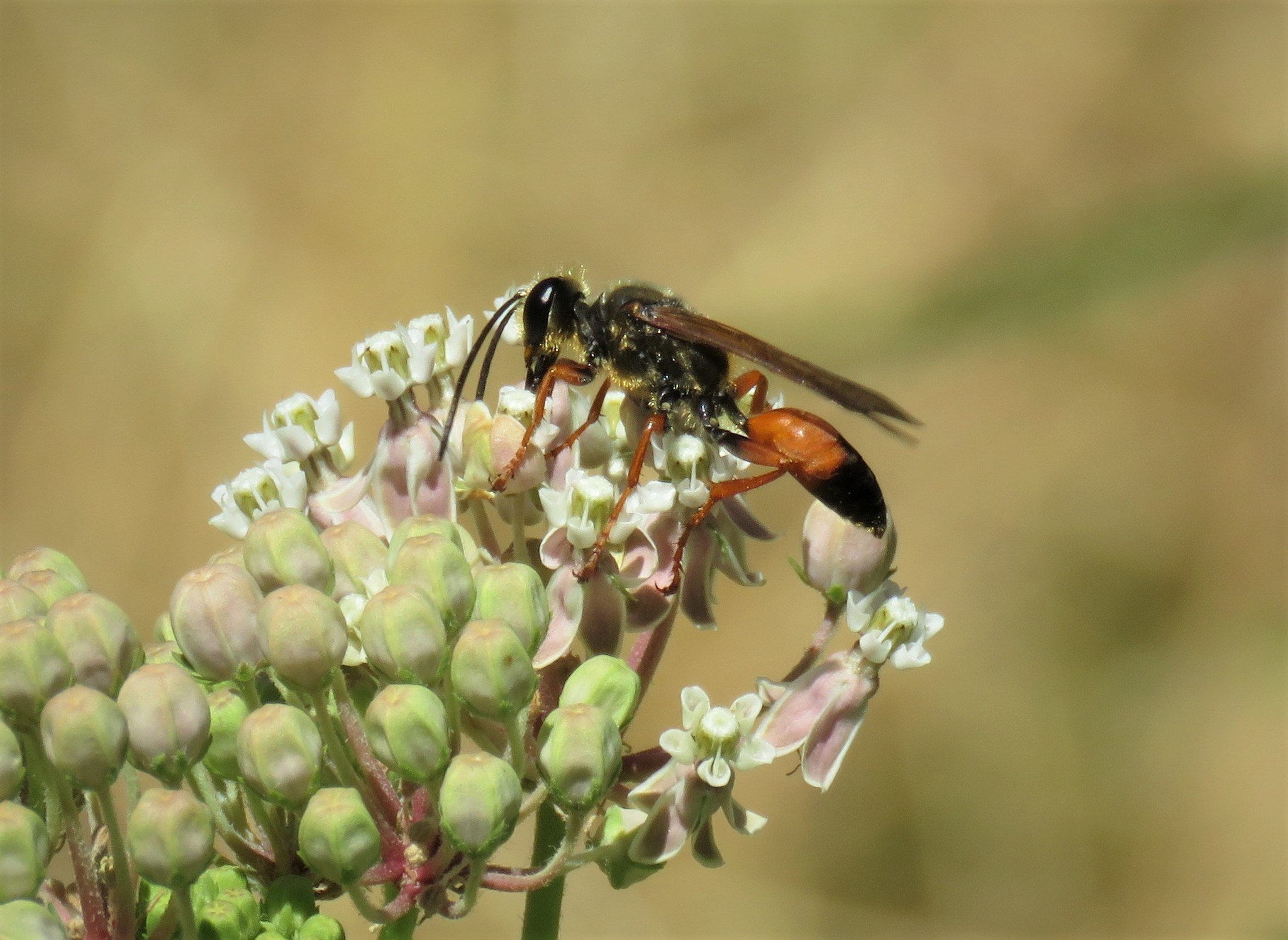Sphex ichneumoneus | species | Asclepias fascicularis | species | eats | Animalia | Arthropoda | Insecta | Hymenoptera | Sphecidae | Sphex | Plantae | Tracheophyta | Magnoliopsida | Gentianales | Apocynaceae | Asclepias | 34.085786 | -117.81073 | 2021 | 6 | 10 | http://creativecommons.org/licenses/by-nc/4.0/ | https://www.inaturalist.org/observations/82501482 | |