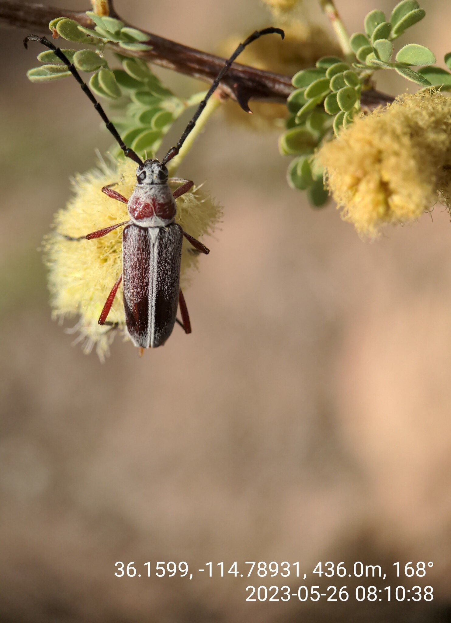 Plionoma rubens | species | Senegalia greggii | species | interactsWith | Animalia | Arthropoda | Insecta | Coleoptera | Cerambycidae | Plionoma | Plantae | Tracheophyta | Magnoliopsida | Fabales | Fabaceae | Senegalia | 36.1599 | -114.78931 | 2023 | 5 | 26 | http://creativecommons.org/licenses/by-nc/4.0/ | https://www.inaturalist.org/observations/164492099 | |