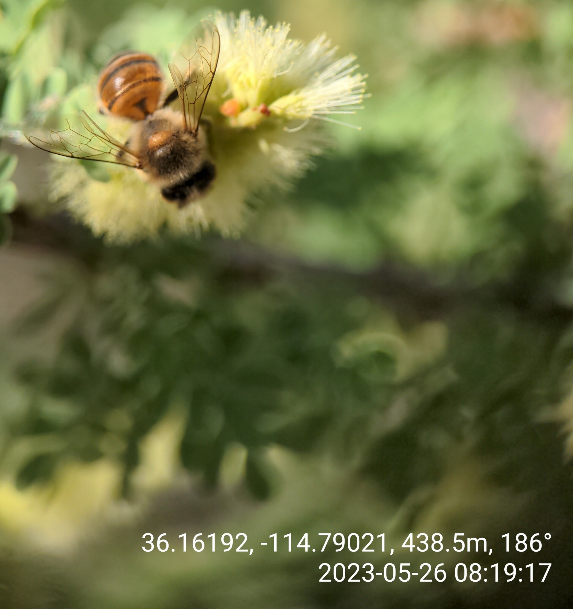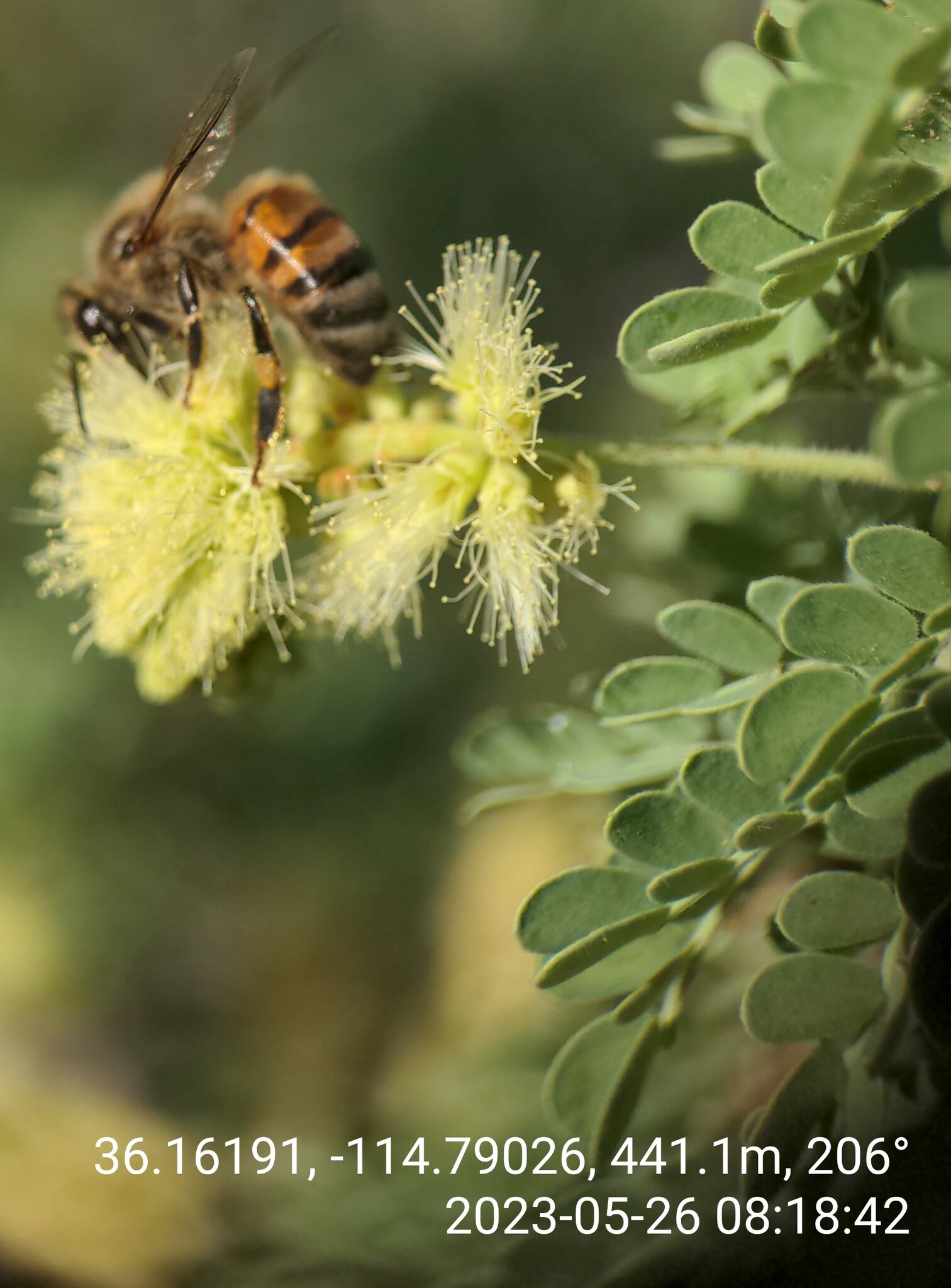 Apis mellifera | species | Senegalia greggii | species | interactsWith | Animalia | Arthropoda | Insecta | Hymenoptera | Apidae | Apis | Plantae | Tracheophyta | Magnoliopsida | Fabales | Fabaceae | Senegalia | 36.16191 | -114.790258 | 2023 | 5 | 26 | http://creativecommons.org/licenses/by-nc/4.0/ | https://www.inaturalist.org/observations/164493531 | |