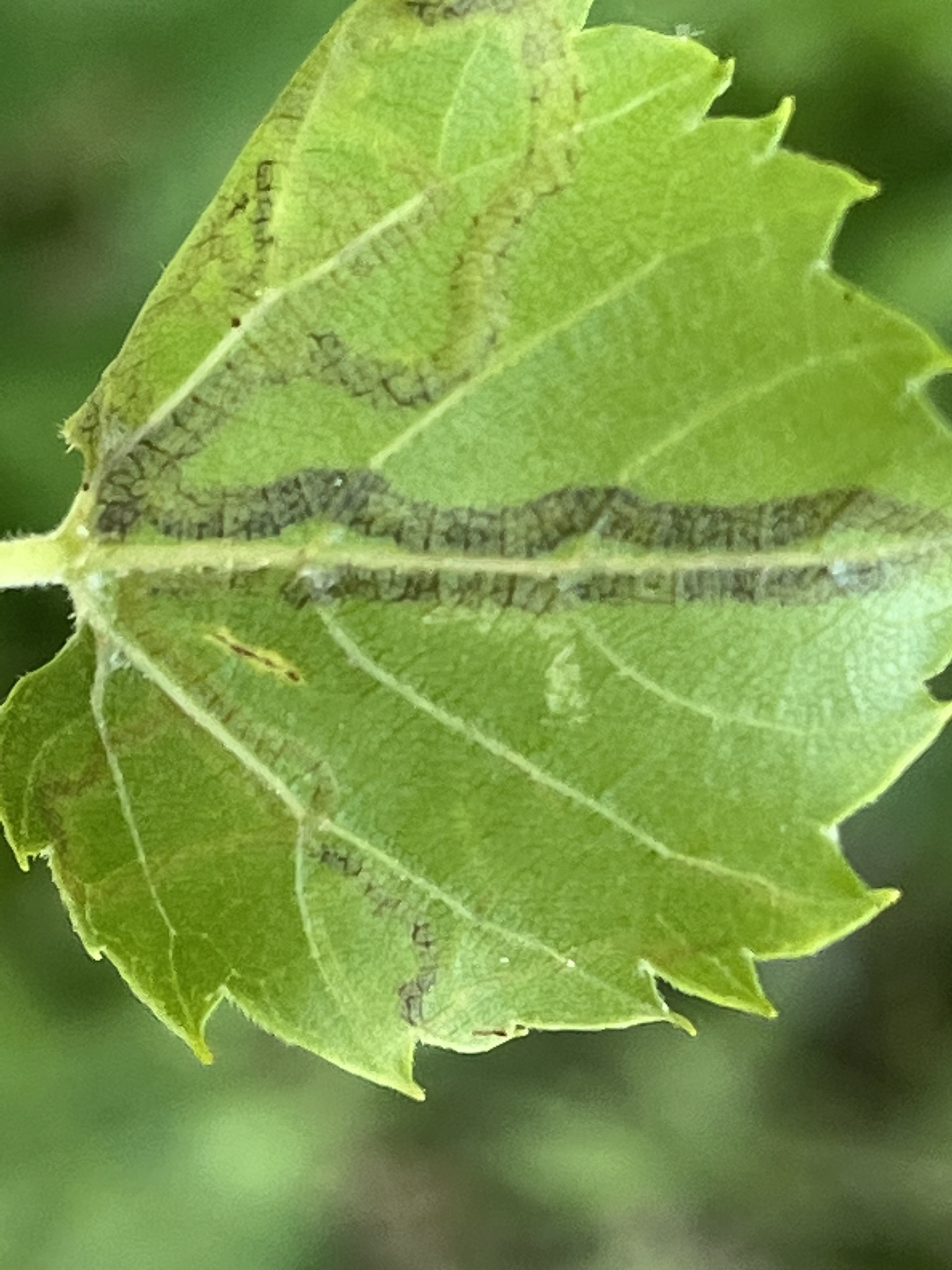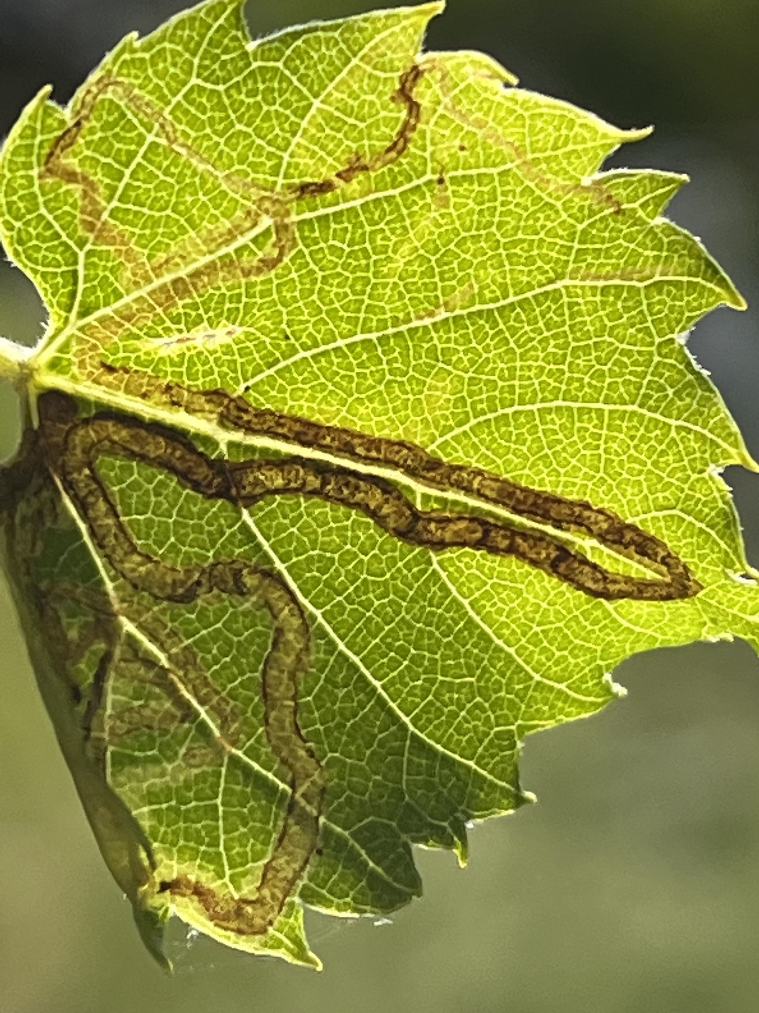 Phyllocnistis vitifoliella | species | Vitis | genus | interactsWith | Animalia | Arthropoda | Insecta | Lepidoptera | Gracillariidae | Phyllocnistis | Plantae | Tracheophyta | Magnoliopsida | Vitales | Vitaceae | Vitis | 39.059411 | -77.443 | 2023 | 5 | 27 | http://creativecommons.org/licenses/by-nc/4.0/ | https://www.inaturalist.org/observations/164499056 | |