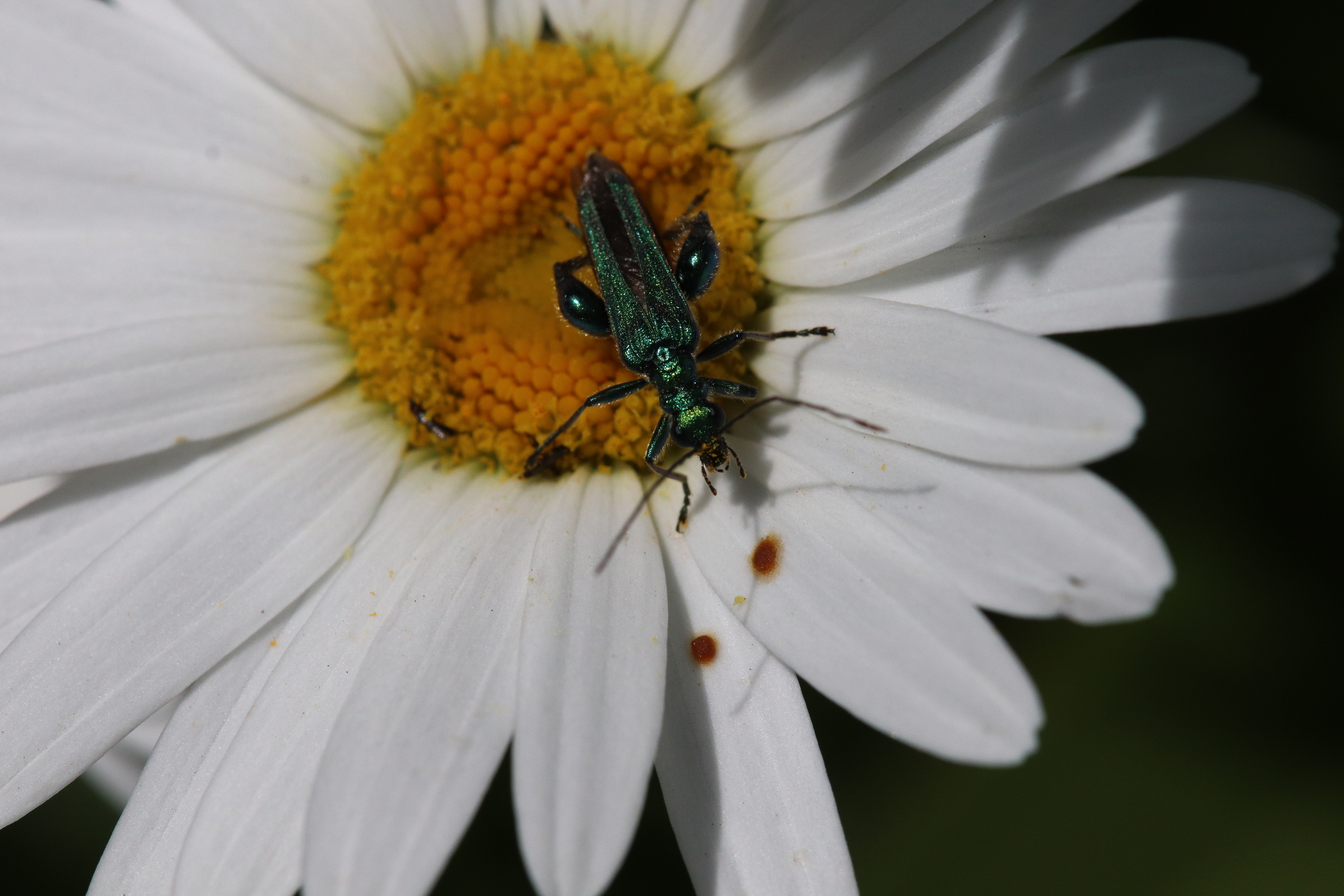Oedemera nobilis | species | Leucanthemum | genus | visits | Animalia | Arthropoda | Insecta | Coleoptera | Oedemeridae | Oedemera | Plantae | Tracheophyta | Magnoliopsida | Asterales | Asteraceae | Leucanthemum | 50.13388 | 8.700655 | 2023 | 5 | 29 | http://creativecommons.org/licenses/by-nc/4.0/ | https://www.inaturalist.org/observations/164499266 | |