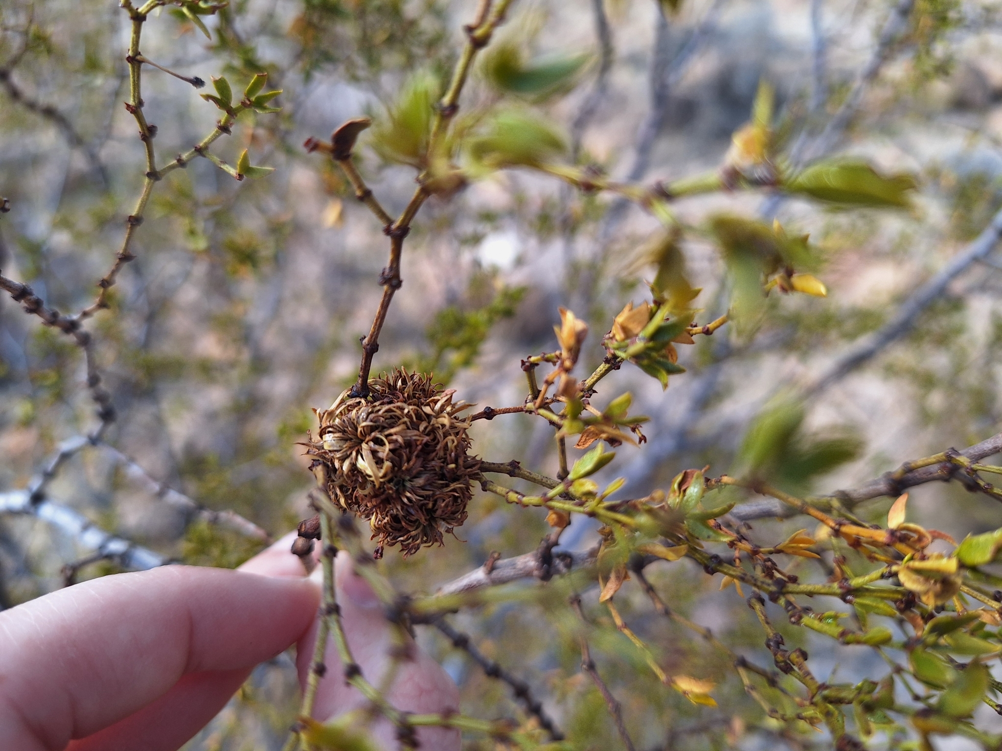Asphondylia auripila | species | Larrea tridentata | species | interactsWith | Animalia | Arthropoda | Insecta | Diptera | Cecidomyiidae | Asphondylia | Plantae | Tracheophyta | Magnoliopsida | Zygophyllales | Zygophyllaceae | Larrea | 34.980771 | -115.498556 | 2024 | 10 | 6 | http://creativecommons.org/licenses/by-nc/4.0/ | https://www.inaturalist.org/observations/246404864 | |
