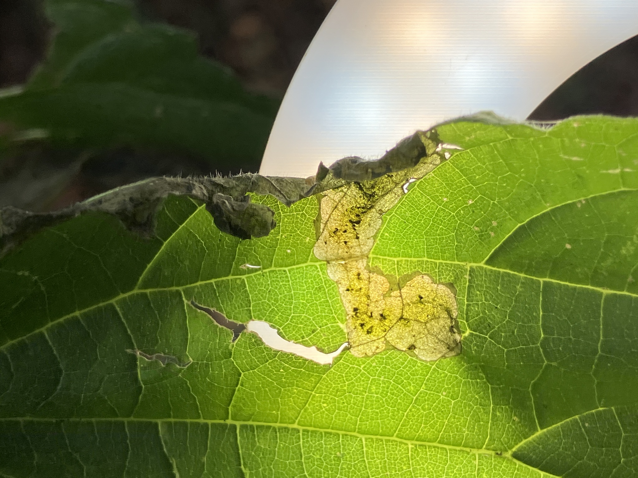 Coptodisca lucifluella | species | Carya | genus | interactsWith | Animalia | Arthropoda | Insecta | Lepidoptera | Heliozelidae | Coptodisca | Plantae | Tracheophyta | Magnoliopsida | Fagales | Juglandaceae | Carya | 38.299119 | -76.533677 | 2024 | 9 | 28 | http://creativecommons.org/licenses/by-nc/4.0/ | https://www.inaturalist.org/observations/246410280 | |