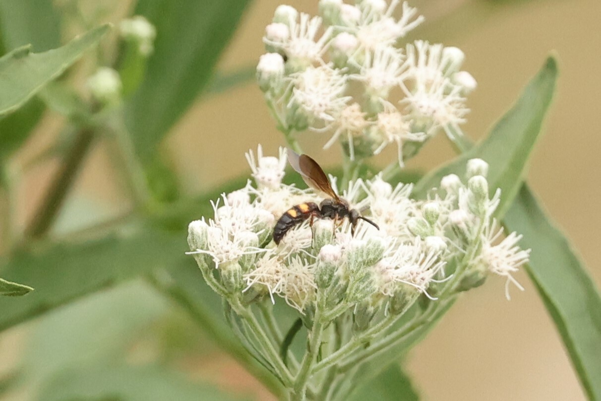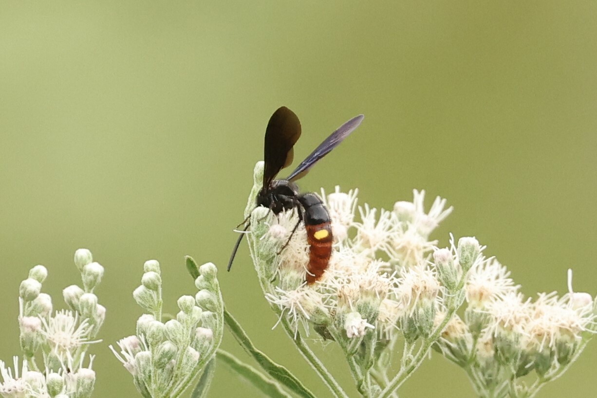 Scolia nobilitata | species | Eupatorium serotinum | species | visitsFlowersOf | Animalia | Arthropoda | Insecta | Hymenoptera | Scoliidae | Scolia | Plantae | Tracheophyta | Magnoliopsida | Asterales | Asteraceae | Eupatorium | 39.779814 | -75.139288 | 2024 | 8 | 18 | http://creativecommons.org/licenses/by-nc/4.0/ | https://www.inaturalist.org/observations/246409059 |