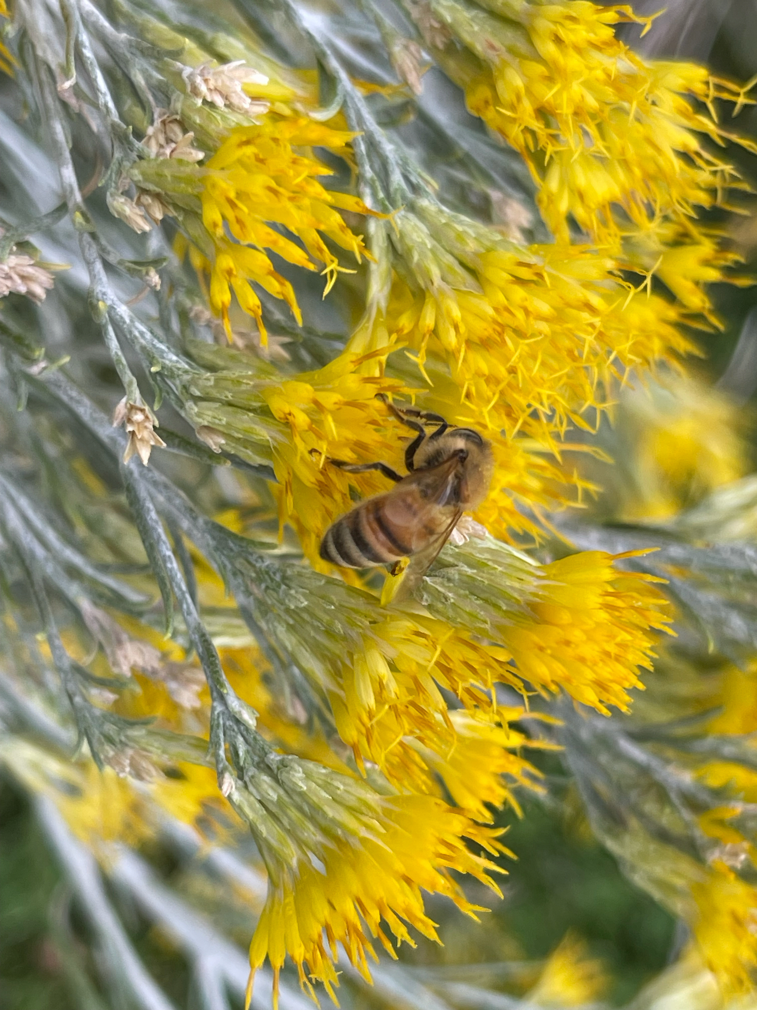 Apis mellifera | species | Ericameria nauseosa | species | interactsWith | Animalia | Arthropoda | Insecta | Hymenoptera | Apidae | Apis | Plantae | Tracheophyta | Magnoliopsida | Asterales | Asteraceae | Ericameria | 39.75605 | -105.141617 | 2024 | 10 | 8 | http://creativecommons.org/licenses/by/4.0/ | https://www.inaturalist.org/observations/246378025 | |