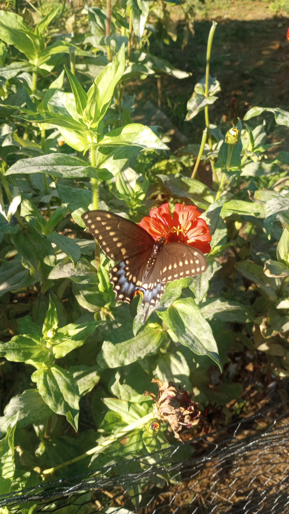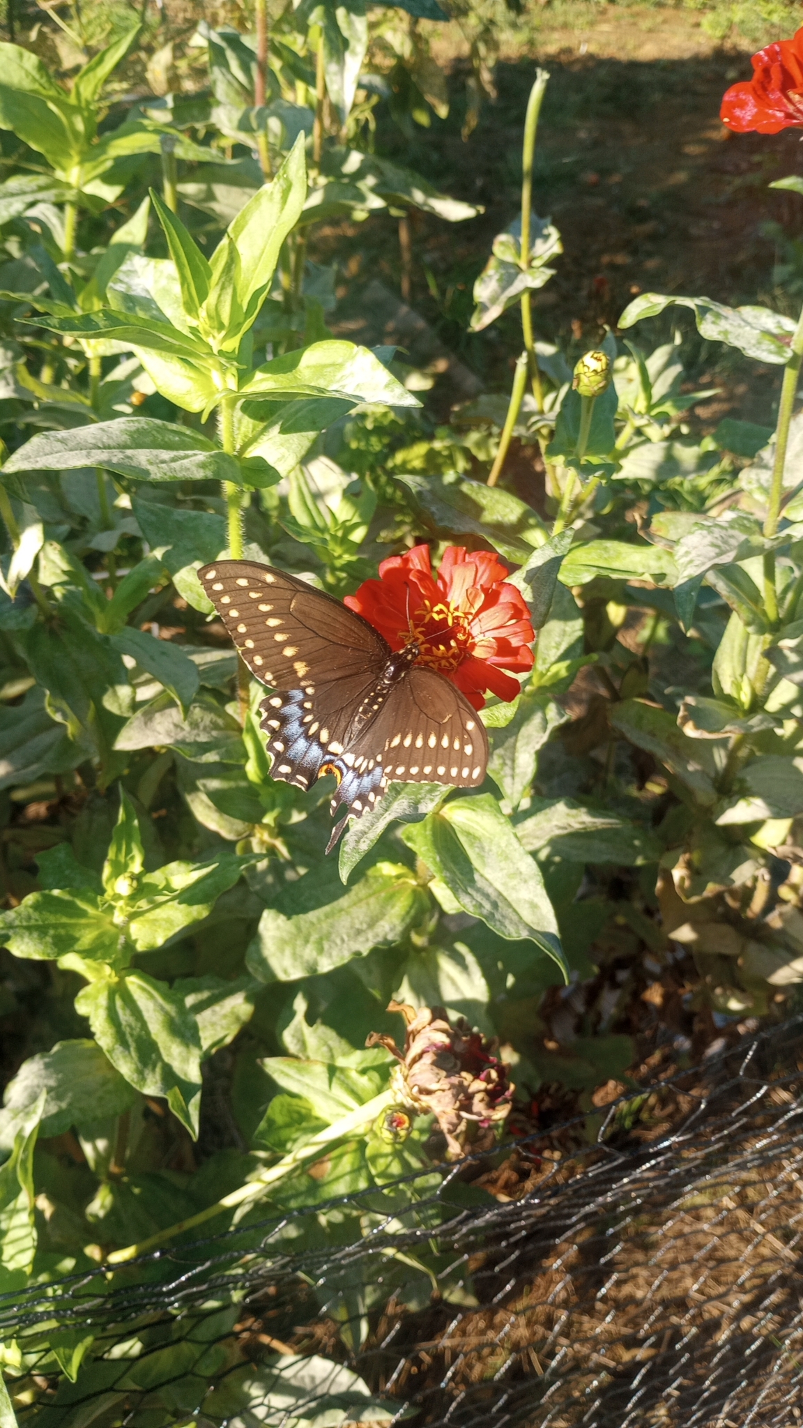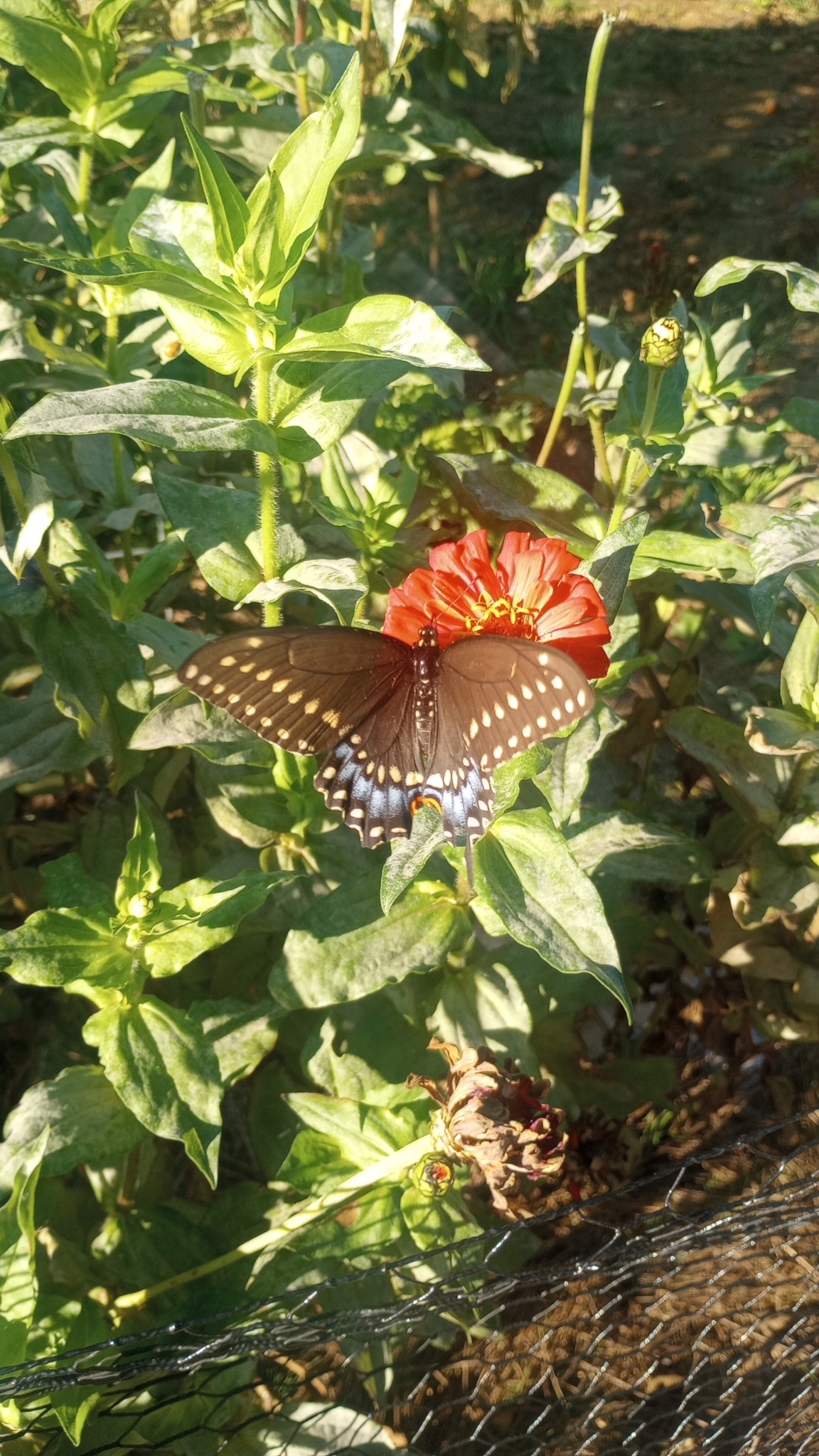 Papilio polyxenes | species | Zinnia | genus | visitsFlowersOf | Animalia | Arthropoda | Insecta | Lepidoptera | Papilionidae | Papilio | Plantae | Tracheophyta | Magnoliopsida | Asterales | Asteraceae | Zinnia | 40.113792 | -76.264389 | 2024 | 10 | 5 | http://creativecommons.org/licenses/by-nc/4.0/ | https://www.inaturalist.org/observations/246378573 | |