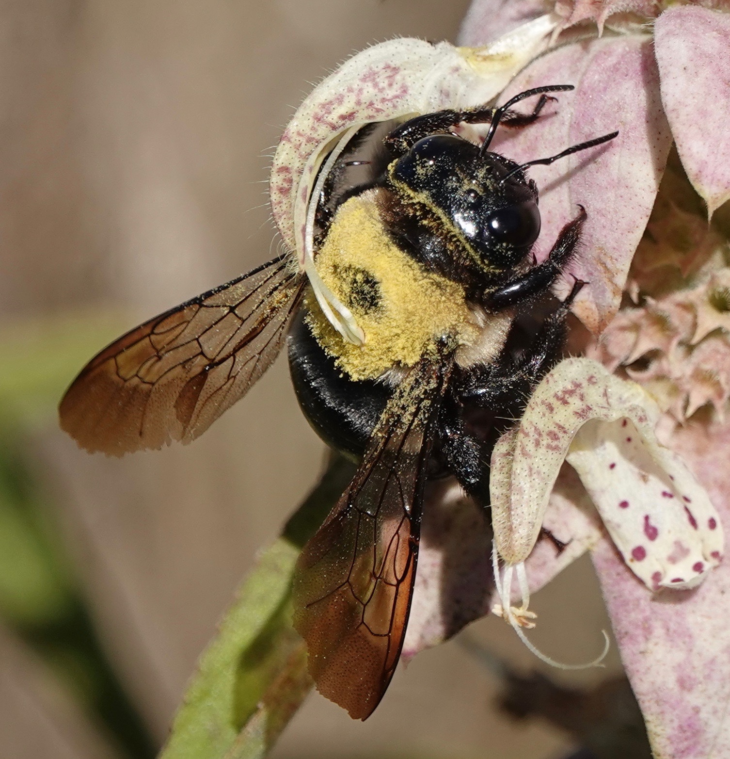 Xylocopa virginica | species | Monarda punctata | species | visitsFlowersOf | Animalia | Arthropoda | Insecta | Hymenoptera | Apidae | Xylocopa | Plantae | Tracheophyta | Magnoliopsida | Lamiales | Lamiaceae | Monarda | 40.656225 | -73.996521 | 2024 | 10 | 8 | http://creativecommons.org/licenses/by-nc/4.0/ | https://www.inaturalist.org/observations/246380214 | |
