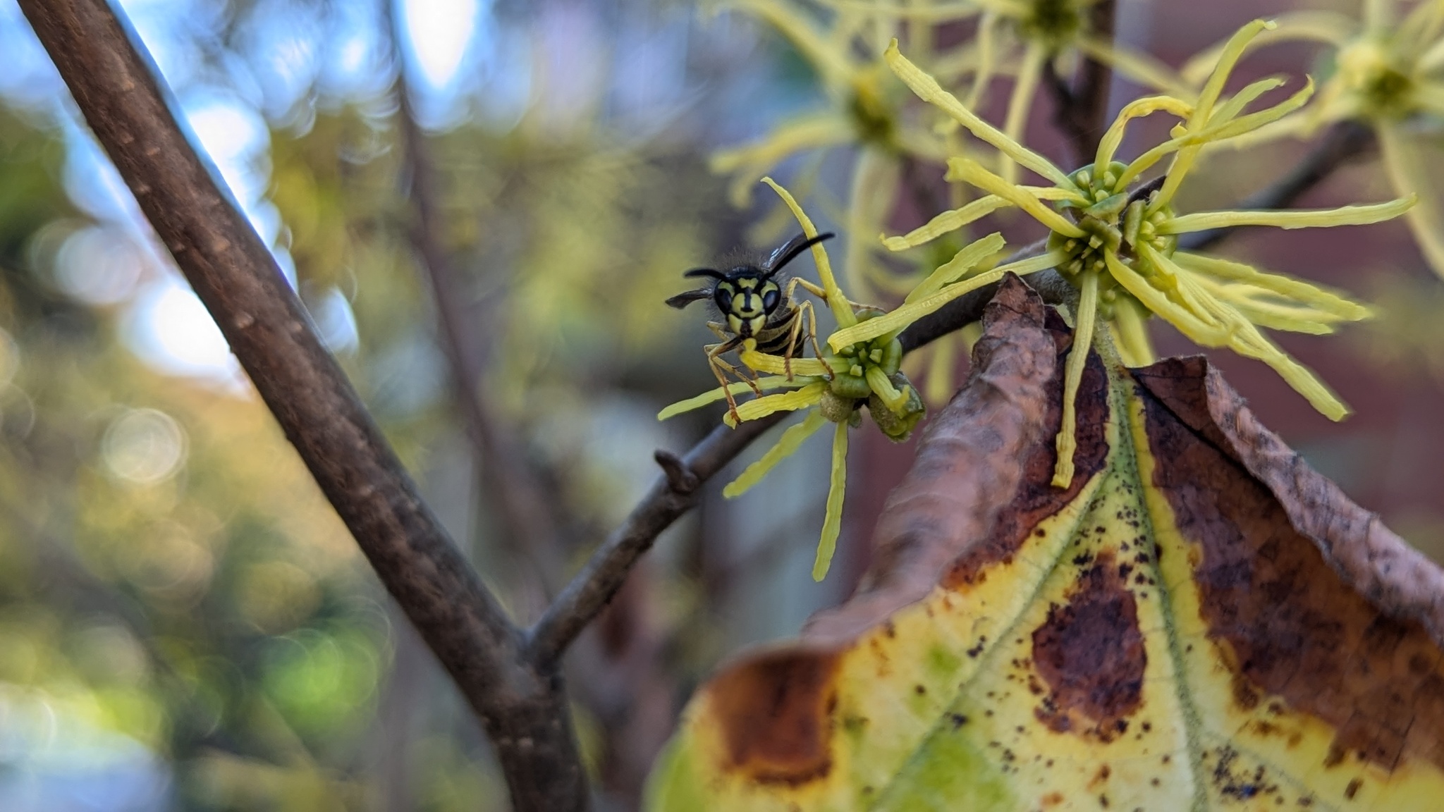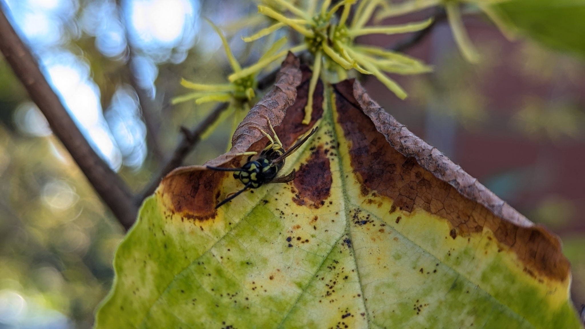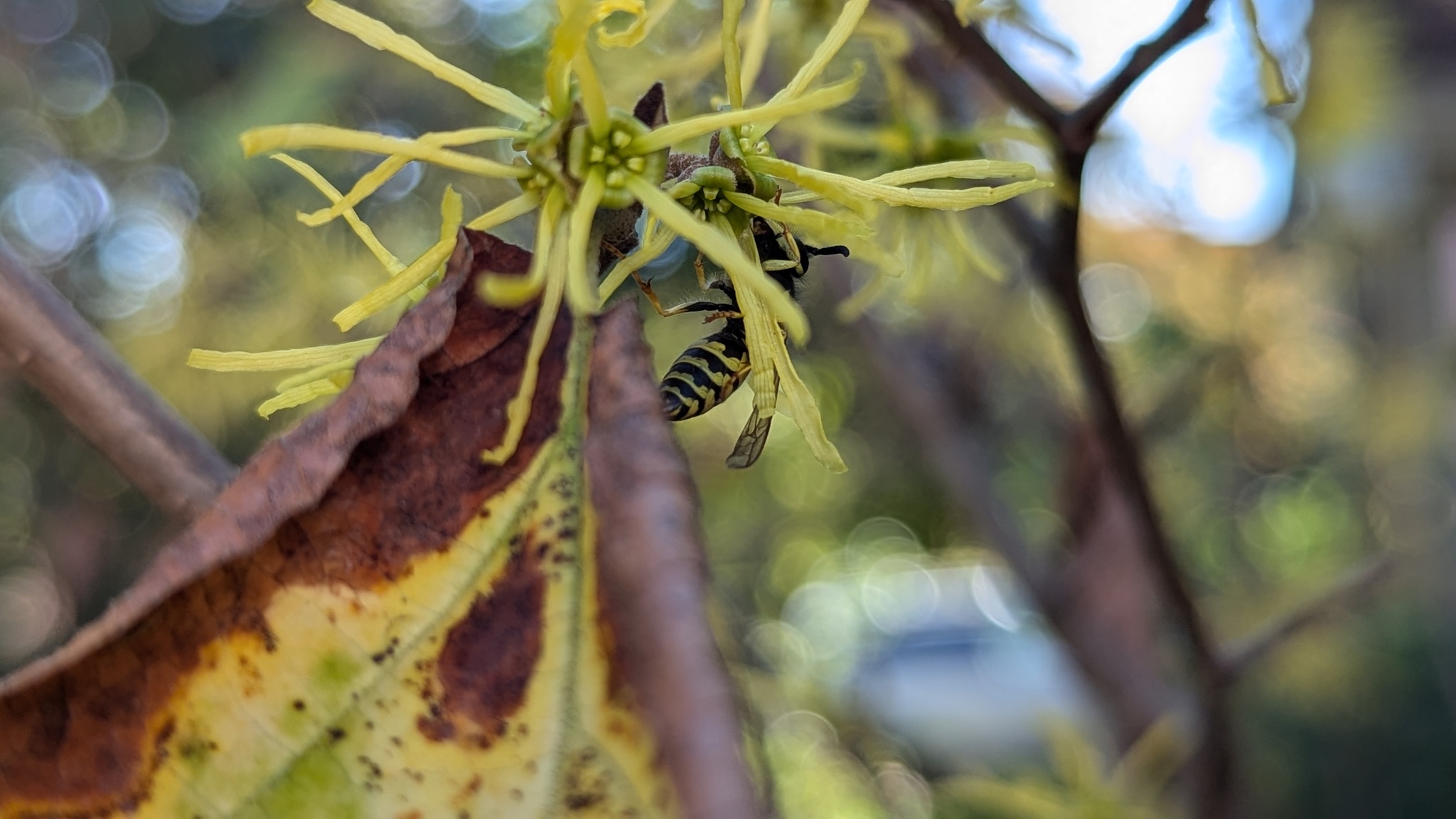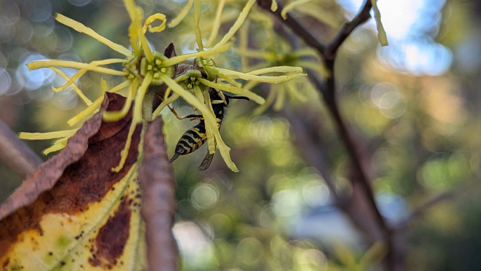 Vespula maculifrons | species | Hamamelis virginiana | species | visitsFlowersOf | Animalia | Arthropoda | Insecta | Hymenoptera | Vespidae | Vespula | Plantae | Tracheophyta | Magnoliopsida | Saxifragales | Hamamelidaceae | Hamamelis | 42.386407 | -71.108484 | 2024 | 10 | 8 | http://creativecommons.org/licenses/by-nc/4.0/ | https://www.inaturalist.org/observations/246381070 | |
