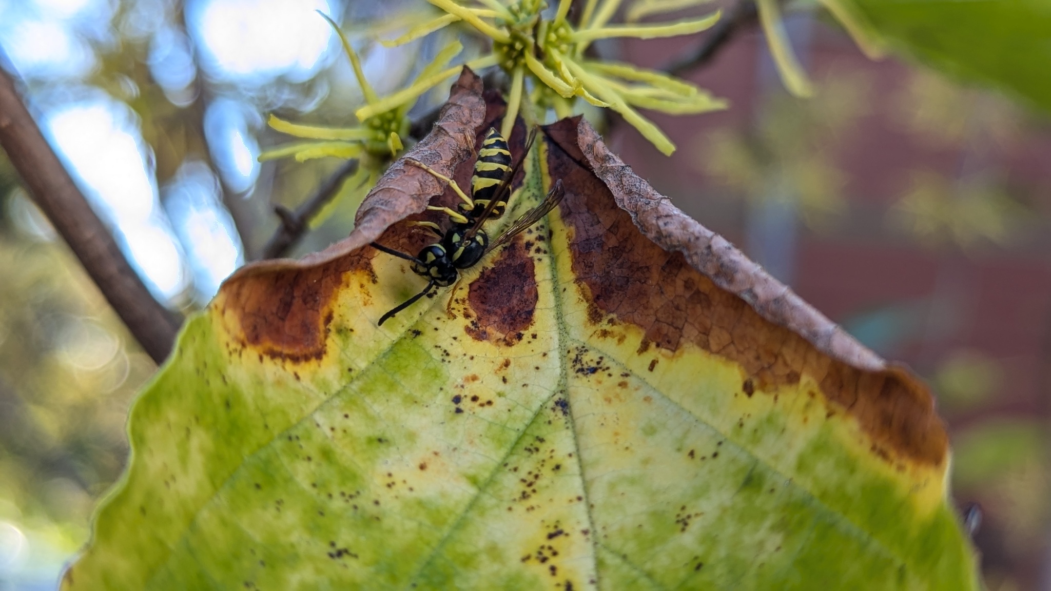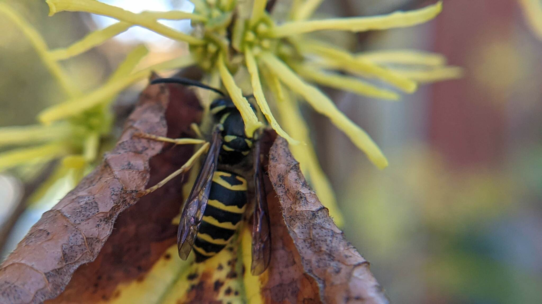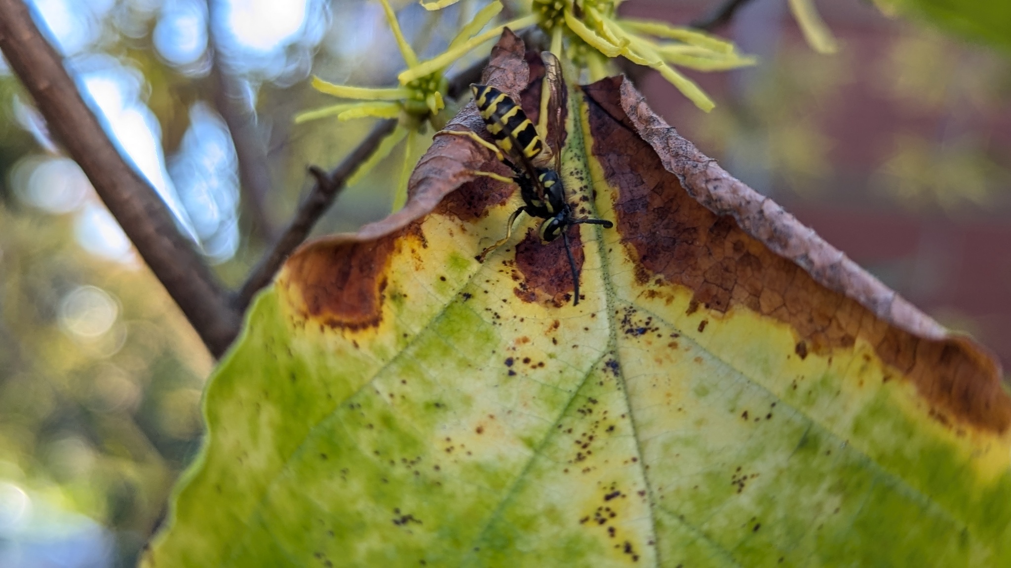 Vespula maculifrons | species | Hamamelis virginiana | species | visitsFlowersOf | Animalia | Arthropoda | Insecta | Hymenoptera | Vespidae | Vespula | Plantae | Tracheophyta | Magnoliopsida | Saxifragales | Hamamelidaceae | Hamamelis | 42.386407 | -71.108484 | 2024 | 10 | 8 | http://creativecommons.org/licenses/by-nc/4.0/ | https://www.inaturalist.org/observations/246381070 | |
