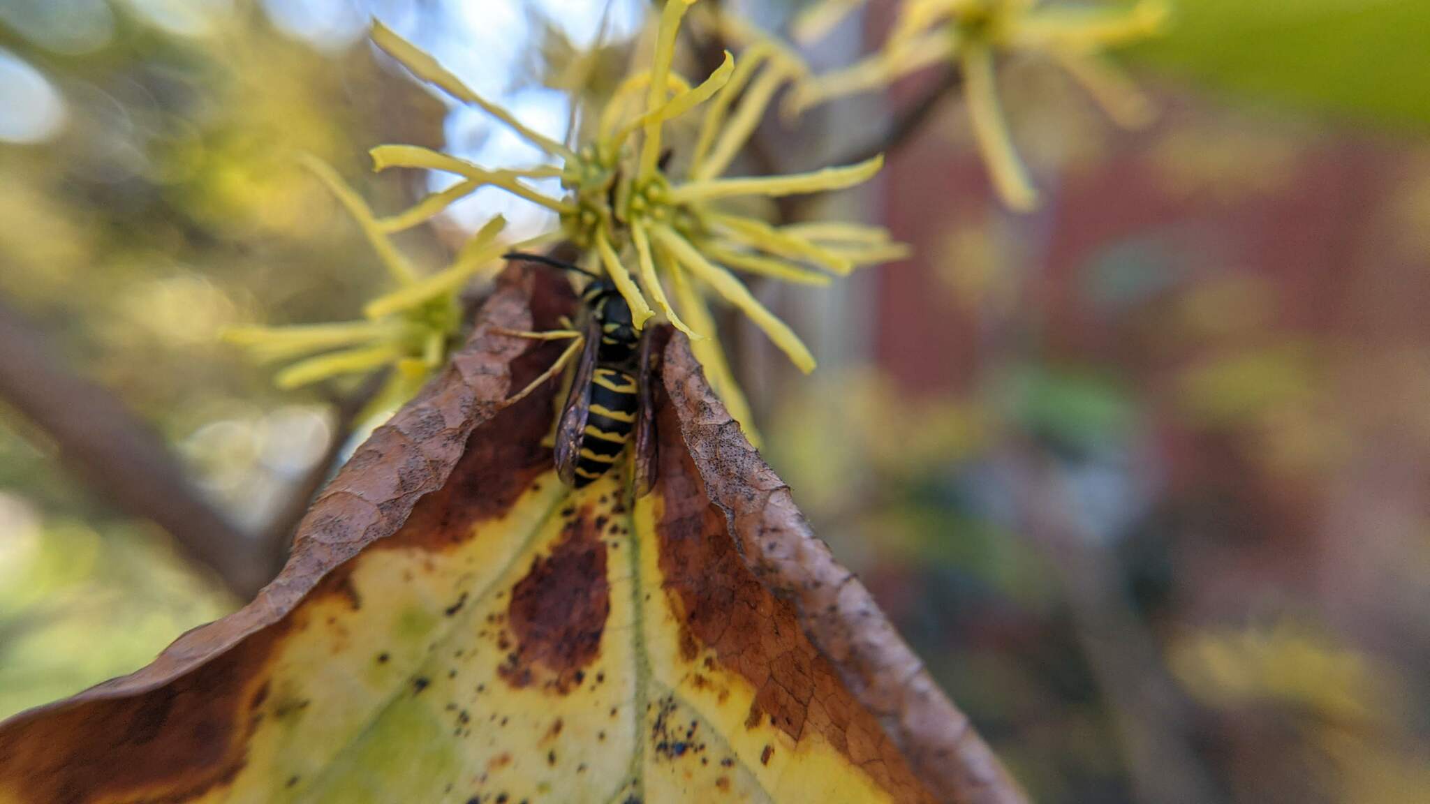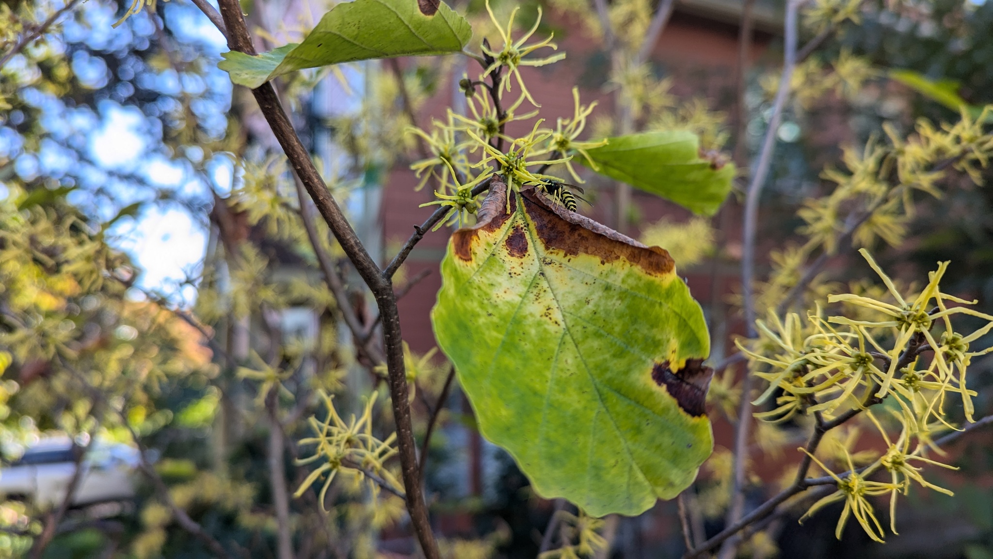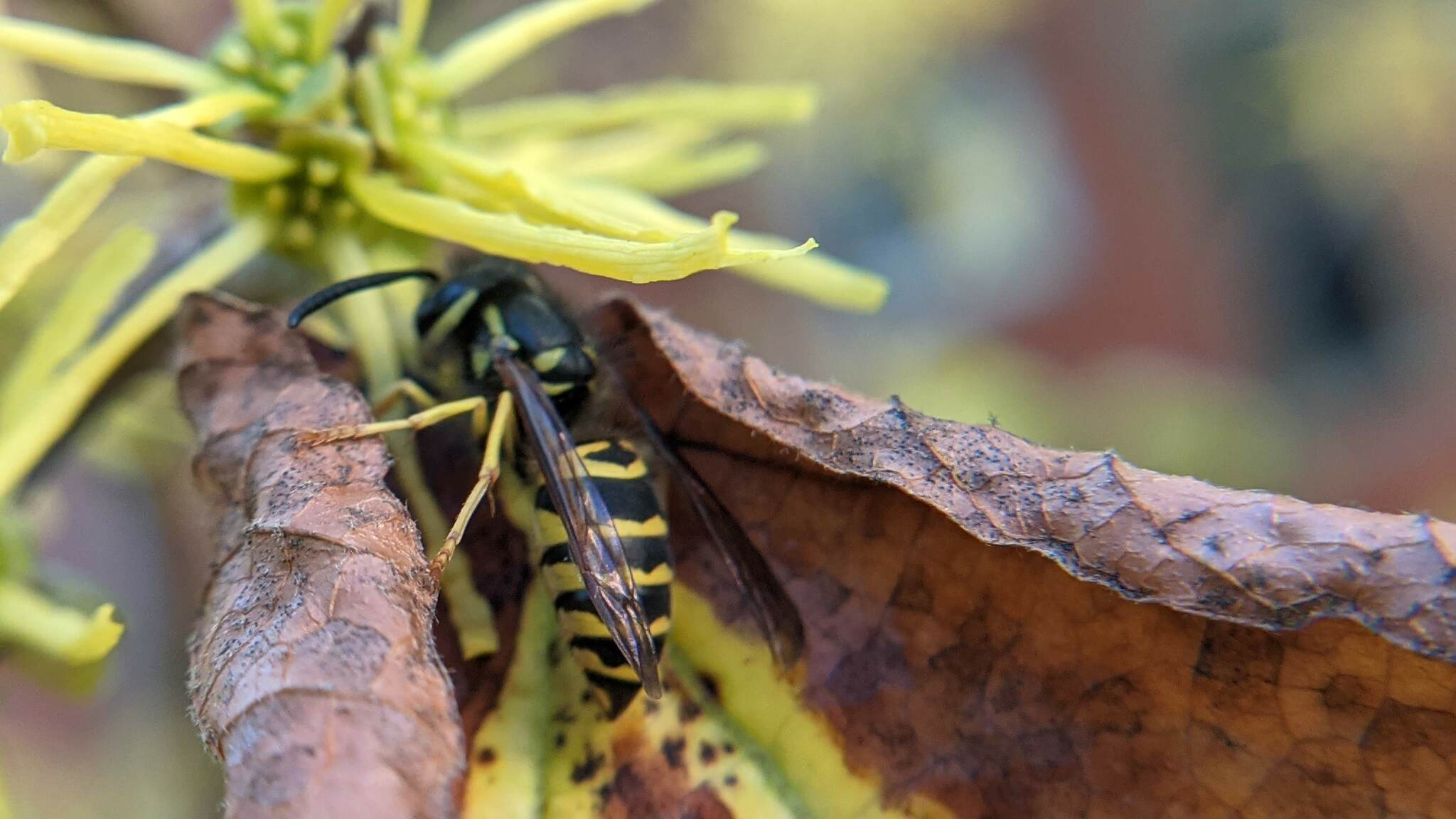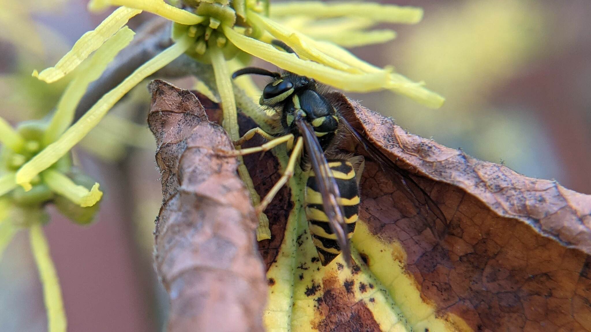 Vespula maculifrons | species | Hamamelis virginiana | species | visitsFlowersOf | Animalia | Arthropoda | Insecta | Hymenoptera | Vespidae | Vespula | Plantae | Tracheophyta | Magnoliopsida | Saxifragales | Hamamelidaceae | Hamamelis | 42.386407 | -71.108484 | 2024 | 10 | 8 | http://creativecommons.org/licenses/by-nc/4.0/ | https://www.inaturalist.org/observations/246381070 | |