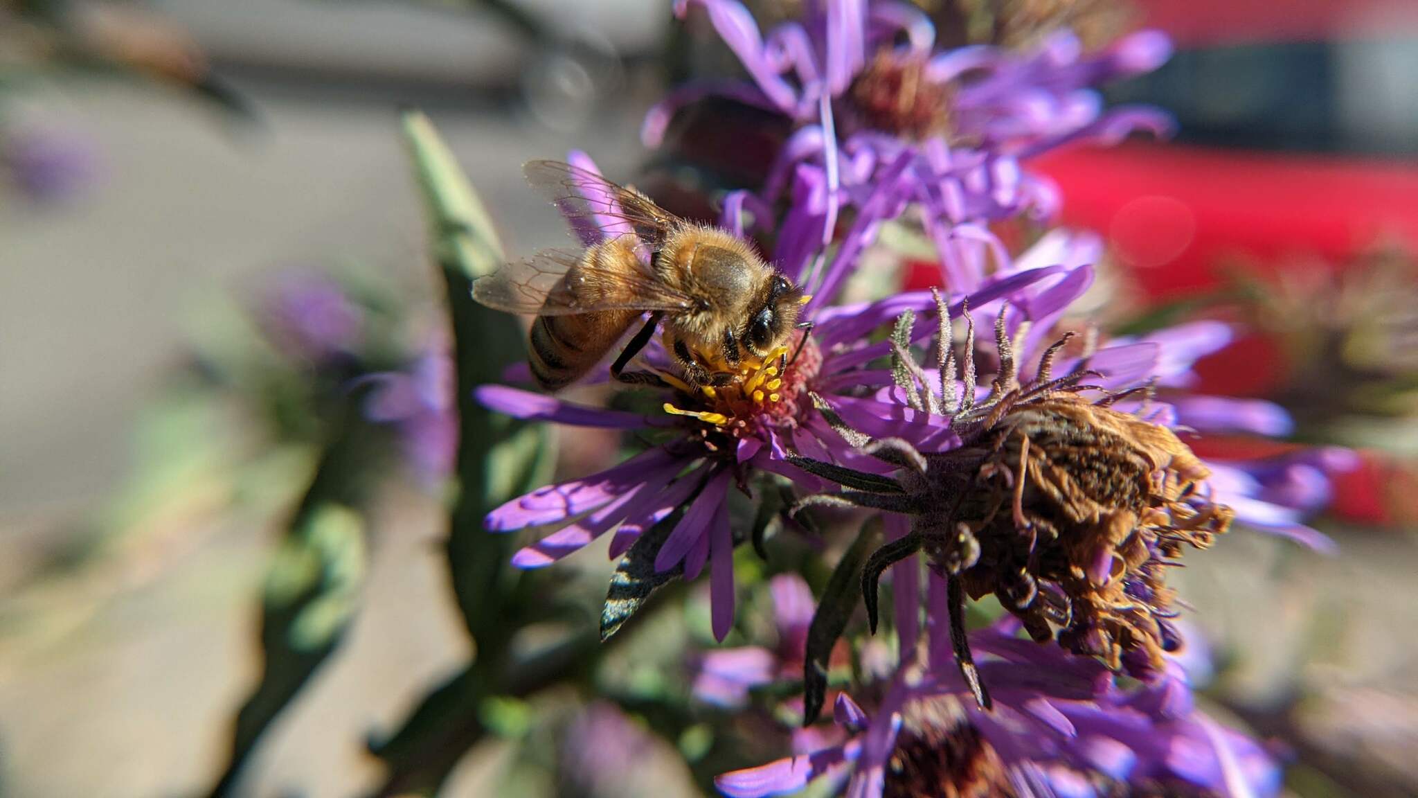 Apis mellifera | species | Symphyotrichum novae-angliae | species | visitsFlowersOf | Animalia | Arthropoda | Insecta | Hymenoptera | Apidae | Apis | Plantae | Tracheophyta | Magnoliopsida | Asterales | Asteraceae | Symphyotrichum | 42.3865 | -71.108381 | 2024 | 10 | 8 | http://creativecommons.org/licenses/by-nc/4.0/ | https://www.inaturalist.org/observations/246381126 | |