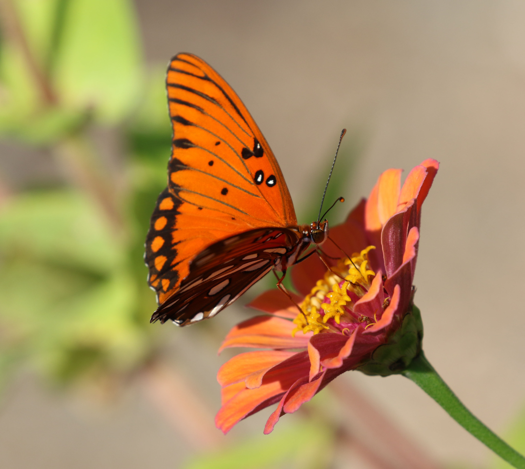 Dione vanillae | species | Zinnia | genus | visitsFlowersOf | Animalia | Arthropoda | Insecta | Lepidoptera | Nymphalidae | Dione | Plantae | Tracheophyta | Magnoliopsida | Asterales | Asteraceae | Zinnia | 30.325577 | -96.155155 | 2024 | 10 | 6 | http://creativecommons.org/licenses/by-nc/4.0/ | https://www.inaturalist.org/observations/246380913 | |
