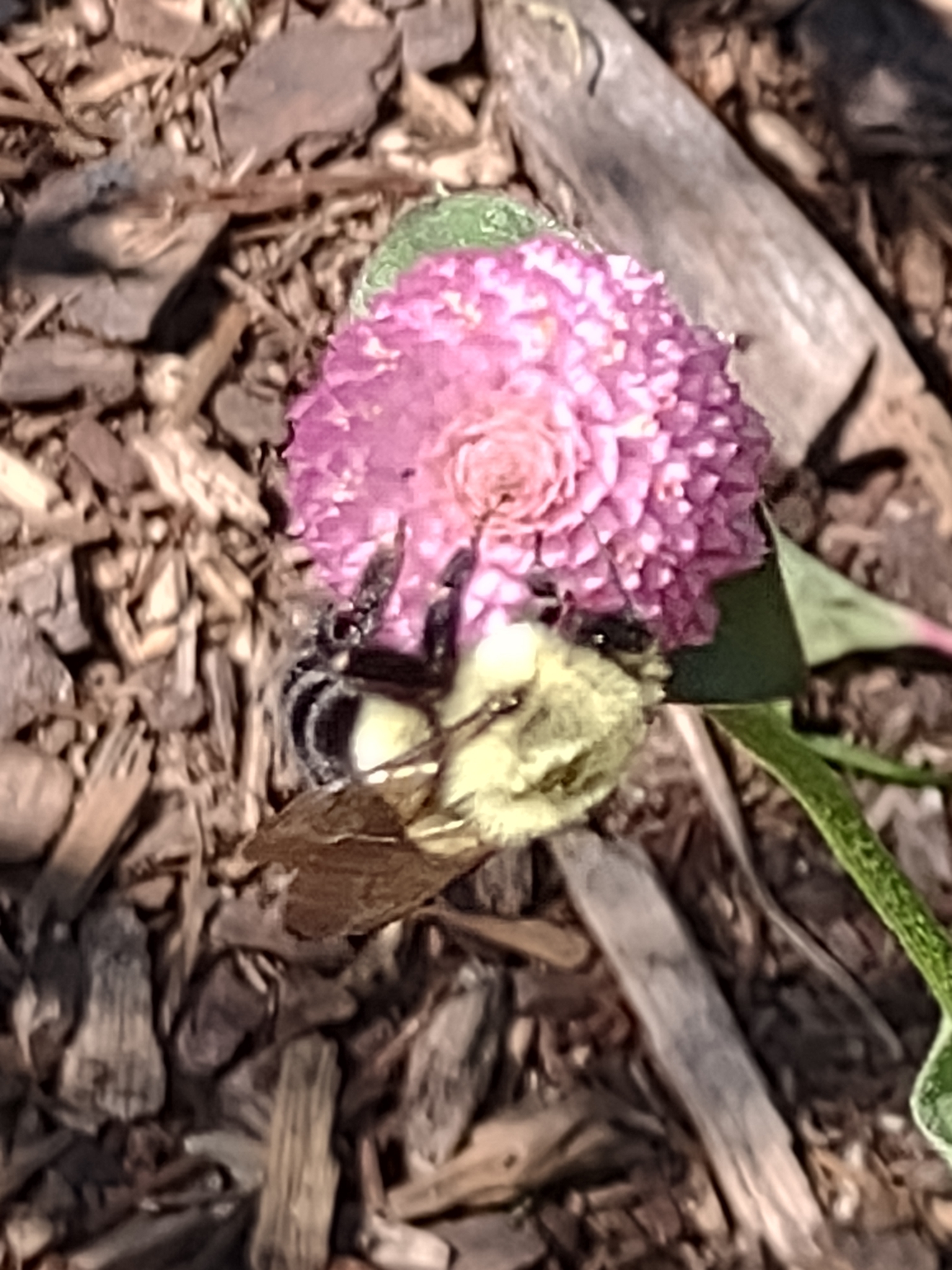 Bombus impatiens | species | Gomphrena globosa | species | visitsFlowersOf | Animalia | Arthropoda | Insecta | Hymenoptera | Apidae | Bombus | Plantae | Tracheophyta | Magnoliopsida | Caryophyllales | Amaranthaceae | Gomphrena | 40.703579 | -74.014976 | 2024 | 10 | 8 | http://creativecommons.org/licenses/by-nc/4.0/ | https://www.inaturalist.org/observations/246385311 | |