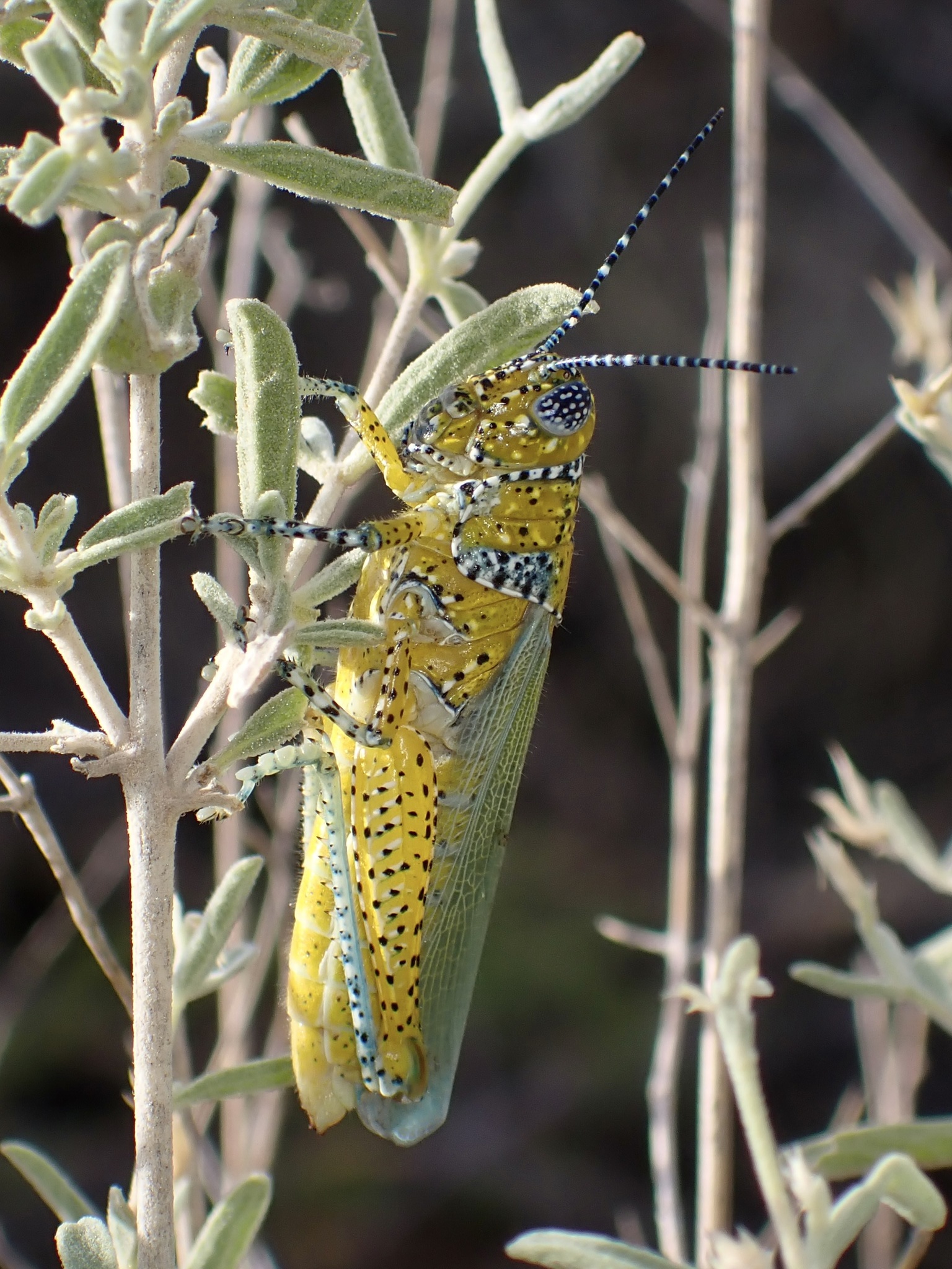 Poecilotettix pantherinus | species | Brickellia venosa | species | interactsWith | Animalia | Arthropoda | Insecta | Orthoptera | Acrididae | Poecilotettix | Plantae | Tracheophyta | Magnoliopsida | Asterales | Asteraceae | Brickellia | 31.606919 | -110.908297 | 2024 | 10 | 8 | http://creativecommons.org/licenses/by/4.0/ | https://www.inaturalist.org/observations/246386854 | |