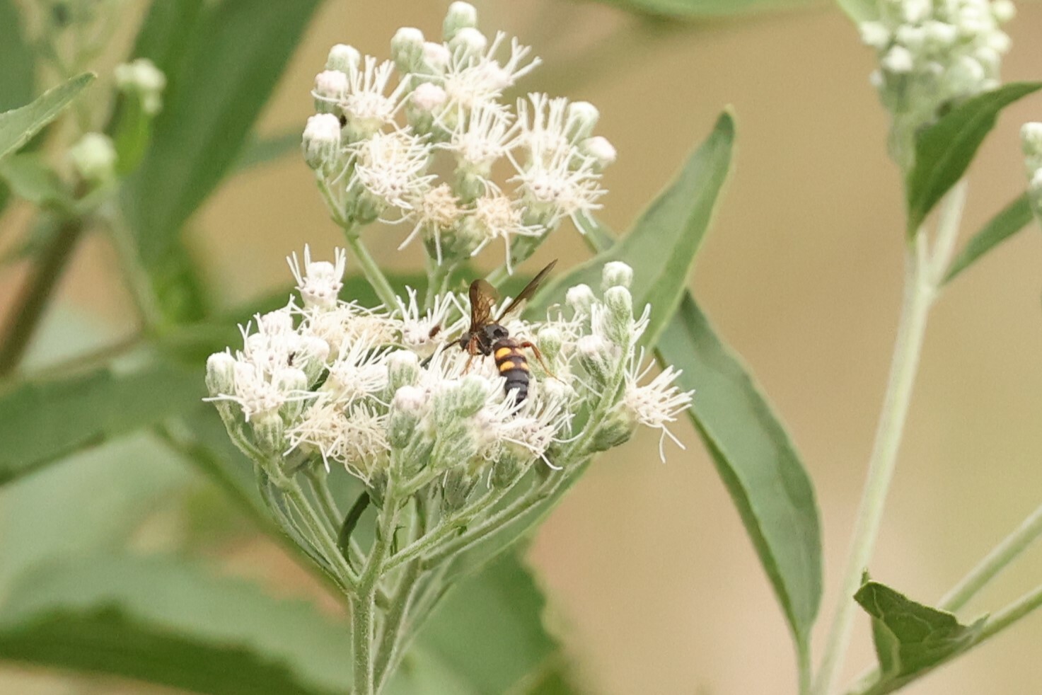 Scolia nobilitata | species | Eupatorium serotinum | species | visitsFlowersOf | Animalia | Arthropoda | Insecta | Hymenoptera | Scoliidae | Scolia | Plantae | Tracheophyta | Magnoliopsida | Asterales | Asteraceae | Eupatorium | 39.779814 | -75.139288 | 2024 | 8 | 18 | http://creativecommons.org/licenses/by-nc/4.0/ | https://www.inaturalist.org/observations/246409059 | |