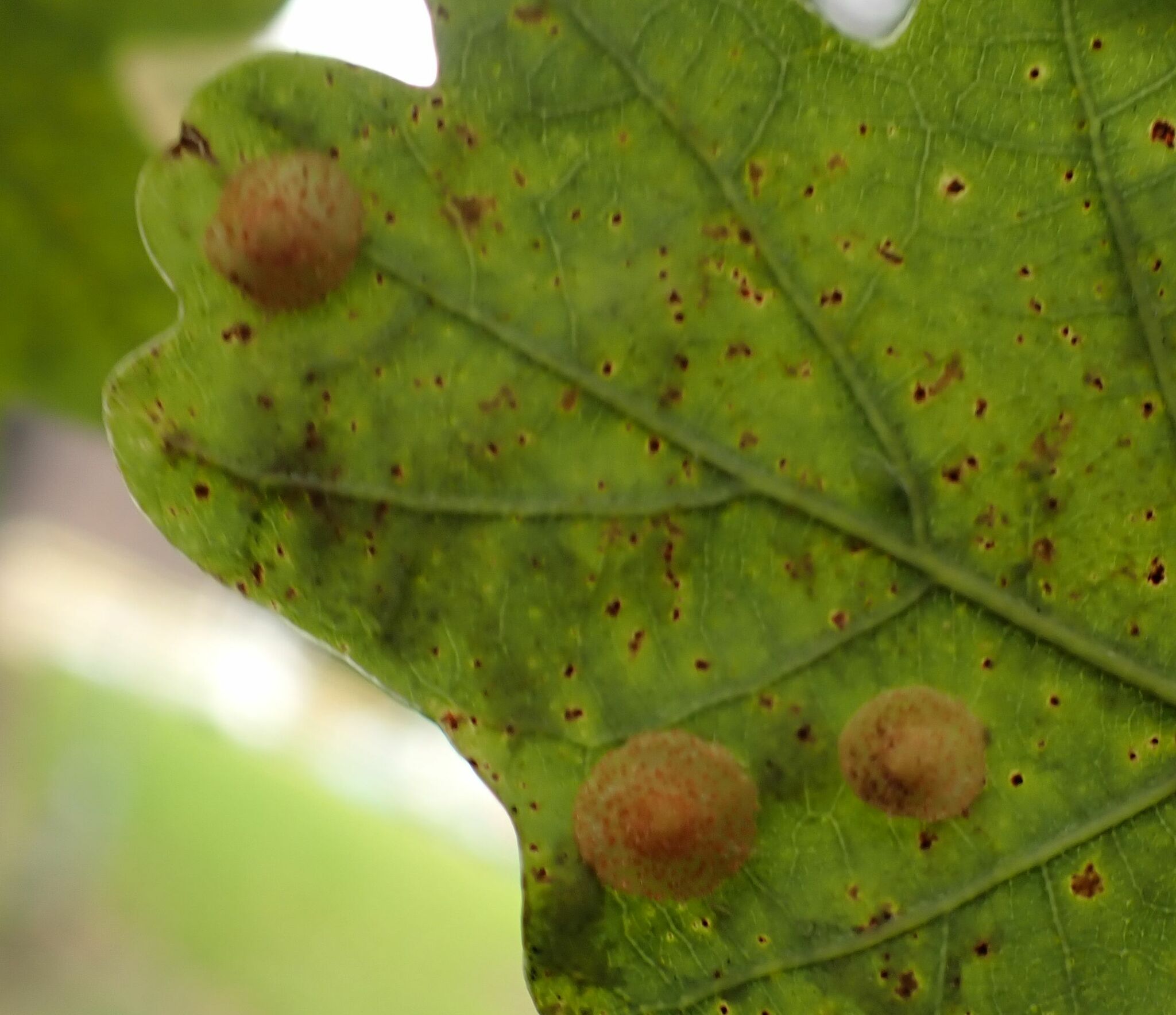 Neuroterus quercusbaccarum | species | Quercus robur | species | interactsWith | Animalia | Arthropoda | Insecta | Hymenoptera | Cynipidae | Neuroterus | Plantae | Tracheophyta | Magnoliopsida | Fagales | Fagaceae | Quercus | 53.262335 | -1.920541 | 2024 | 10 | 8 | http://creativecommons.org/licenses/by/4.0/ | https://www.inaturalist.org/observations/246364575 | |