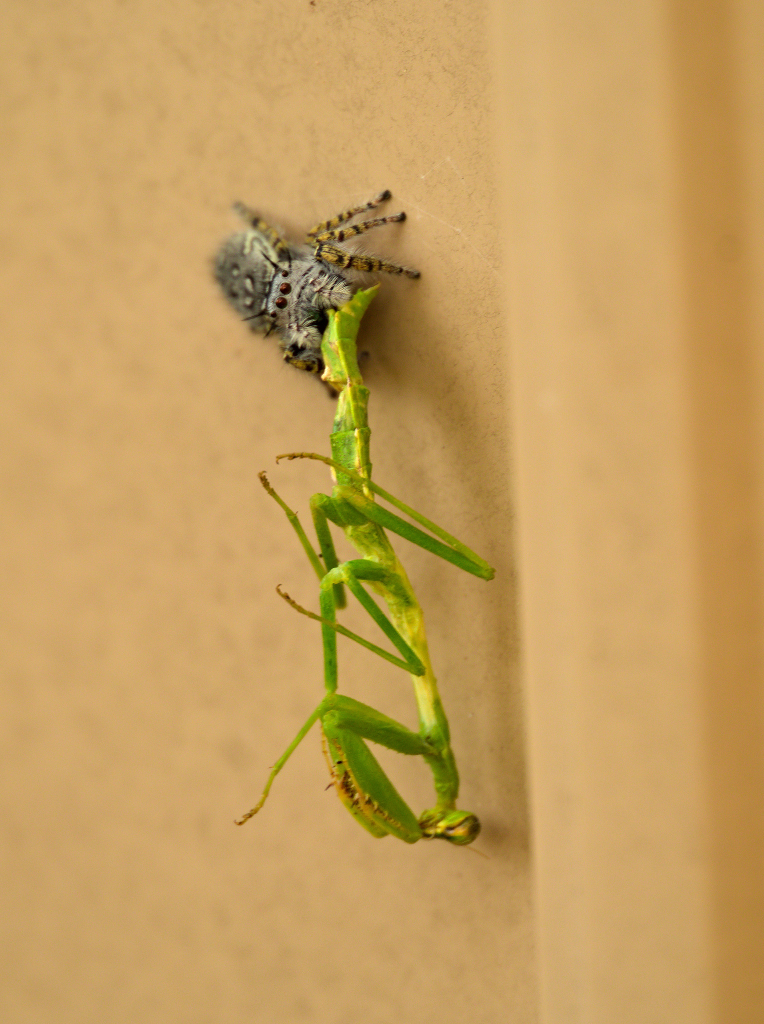 Phidippus mystaceus | species | Stagmomantis carolina | species | preysOn | Animalia | Arthropoda | Arachnida | Araneae | Salticidae | Phidippus | Animalia | Arthropoda | Insecta | Mantodea | Mantidae | Stagmomantis | 36.296643 | -96.303349 | 2024 | 10 | 8 | http://creativecommons.org/licenses/by-nc/4.0/ | https://www.inaturalist.org/observations/246369398 | |