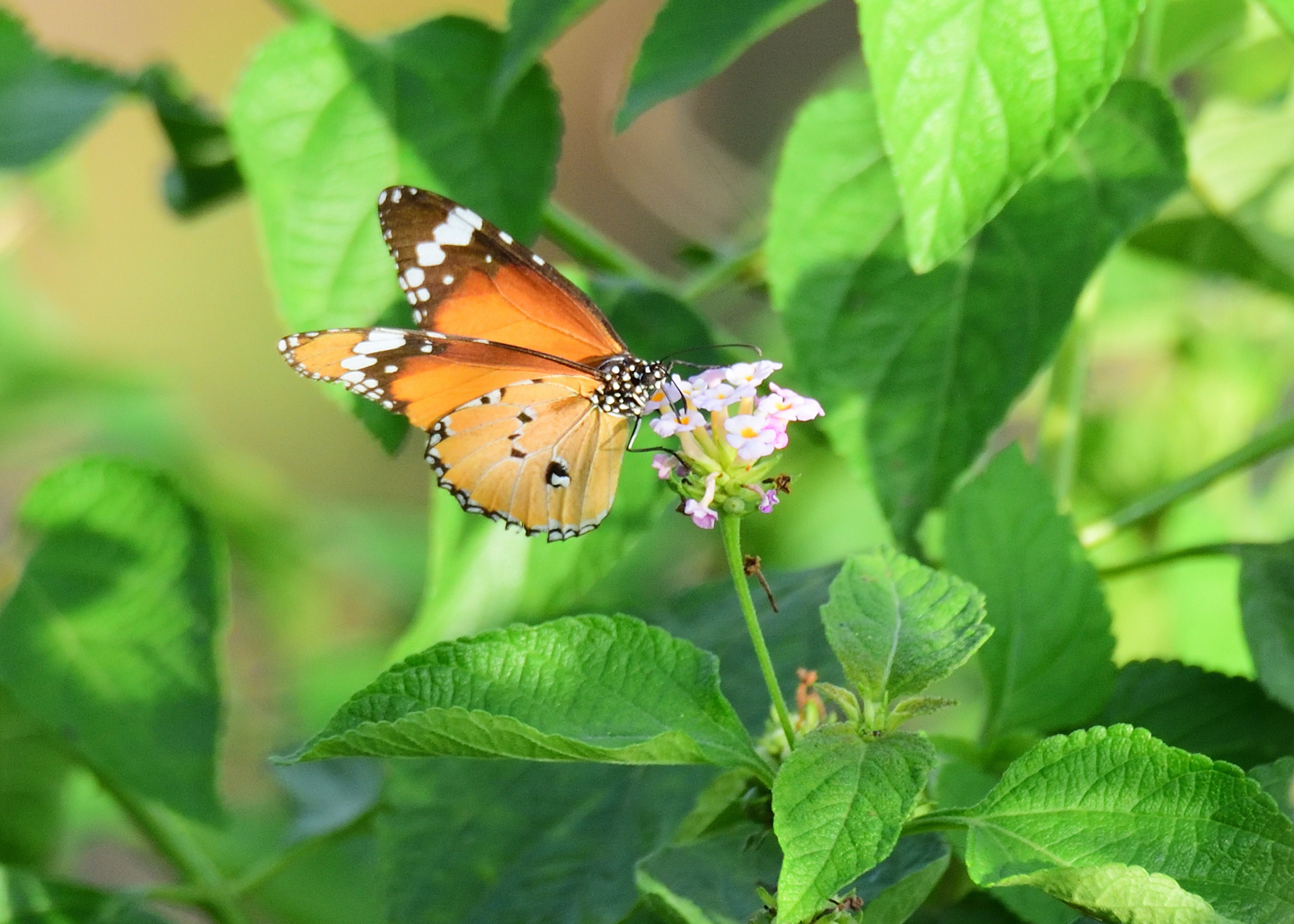 Danaus chrysippus | species | Lantana | genus | eats | Animalia | Arthropoda | Insecta | Lepidoptera | Nymphalidae | Danaus | Plantae | Tracheophyta | Magnoliopsida | Lamiales | Verbenaceae | Lantana | 19.112569 | 79.012642 | 2023 | 8 | 24 | http://creativecommons.org/licenses/by-nc/4.0/ | https://www.inaturalist.org/observations/246341968 | |