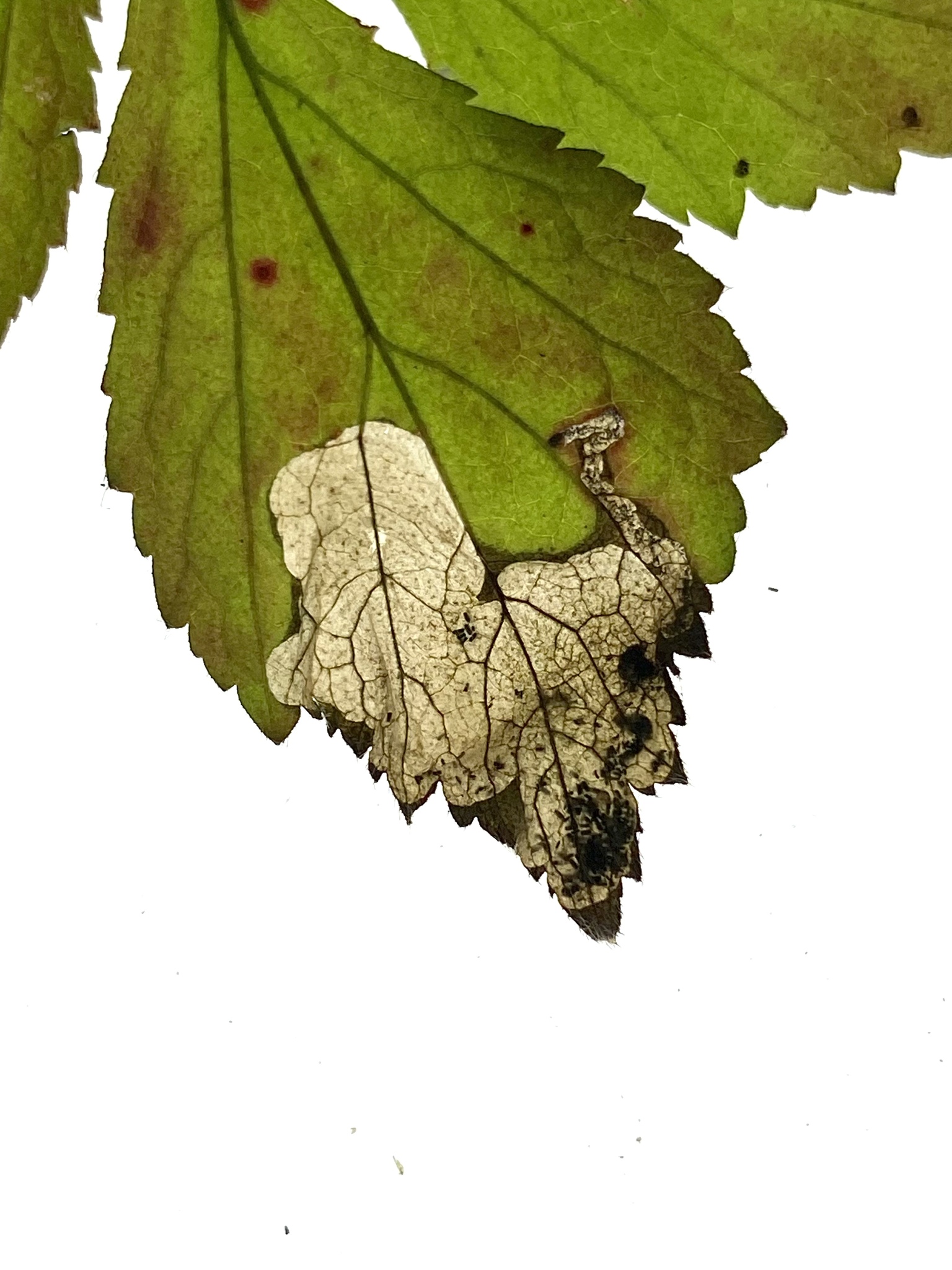 Gracillaria syringella | species | Fraxinus | genus | interactsWith | Animalia | Arthropoda | Insecta | Lepidoptera | Gracillariidae | Gracillaria | Plantae | Tracheophyta | Magnoliopsida | Lamiales | Oleaceae | Fraxinus | 43.56955 | -80.314453 | 2024 | 10 | 8 | http://creativecommons.org/licenses/by/4.0/ | https://www.inaturalist.org/observations/246337585 | |