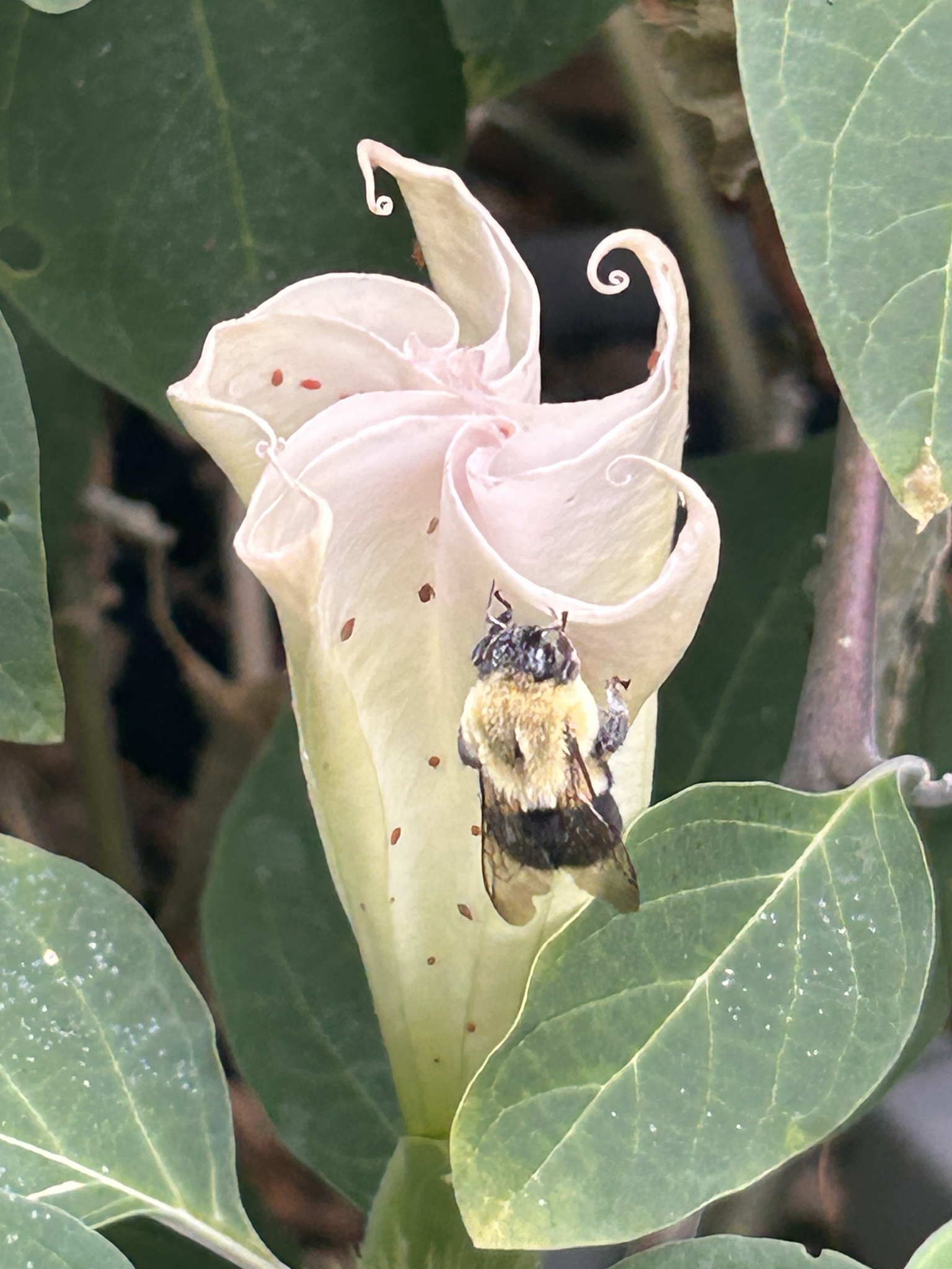 Bombus impatiens | species | Datura | genus | visitsFlowersOf | Animalia | Arthropoda | Insecta | Hymenoptera | Apidae | Bombus | Plantae | Tracheophyta | Magnoliopsida | Solanales | Solanaceae | Datura | 42.090581 | -75.970208 | 2024 | 10 | 8 | http://creativecommons.org/licenses/by-nc/4.0/ | https://www.inaturalist.org/observations/246361421 | |
