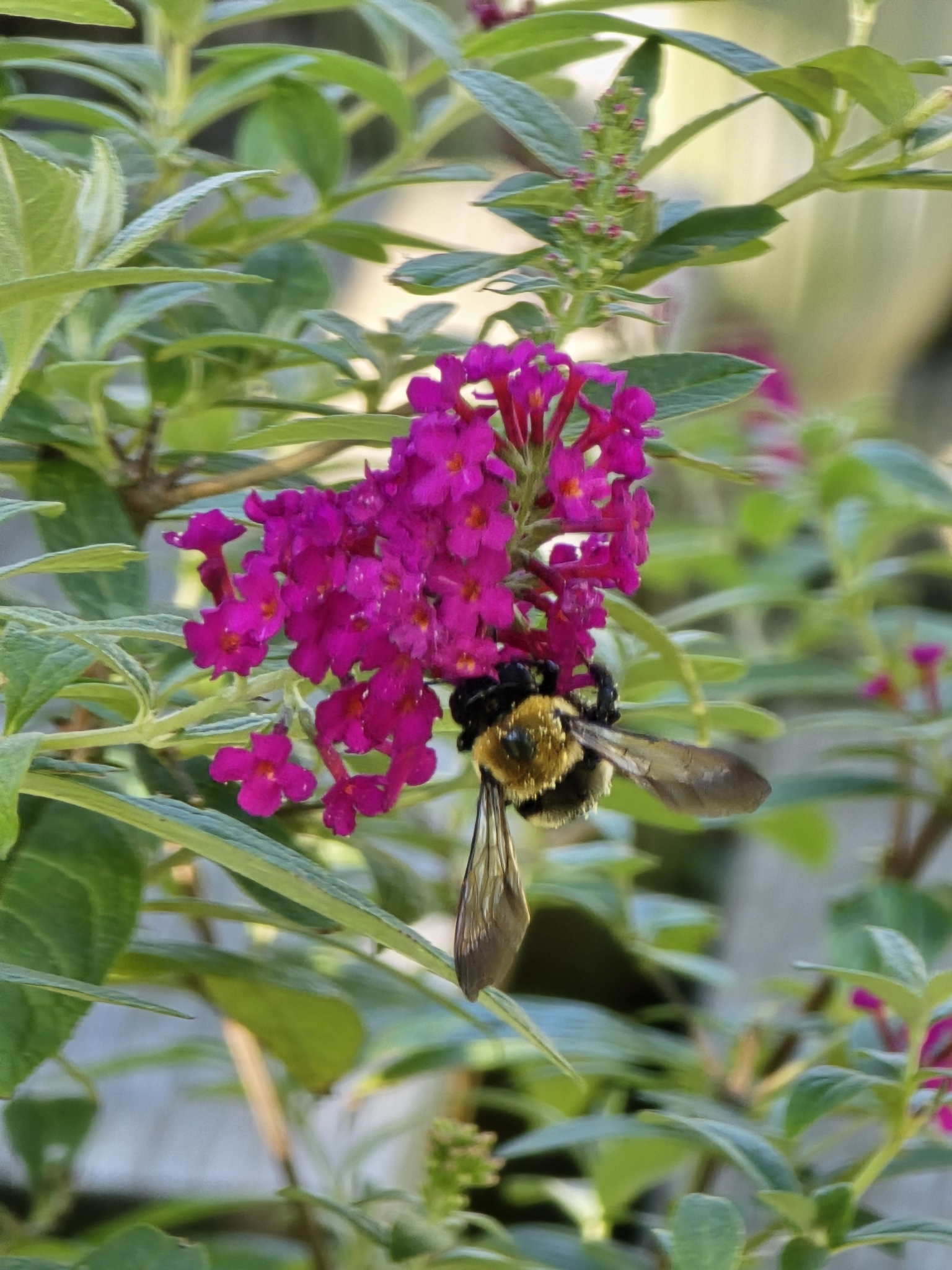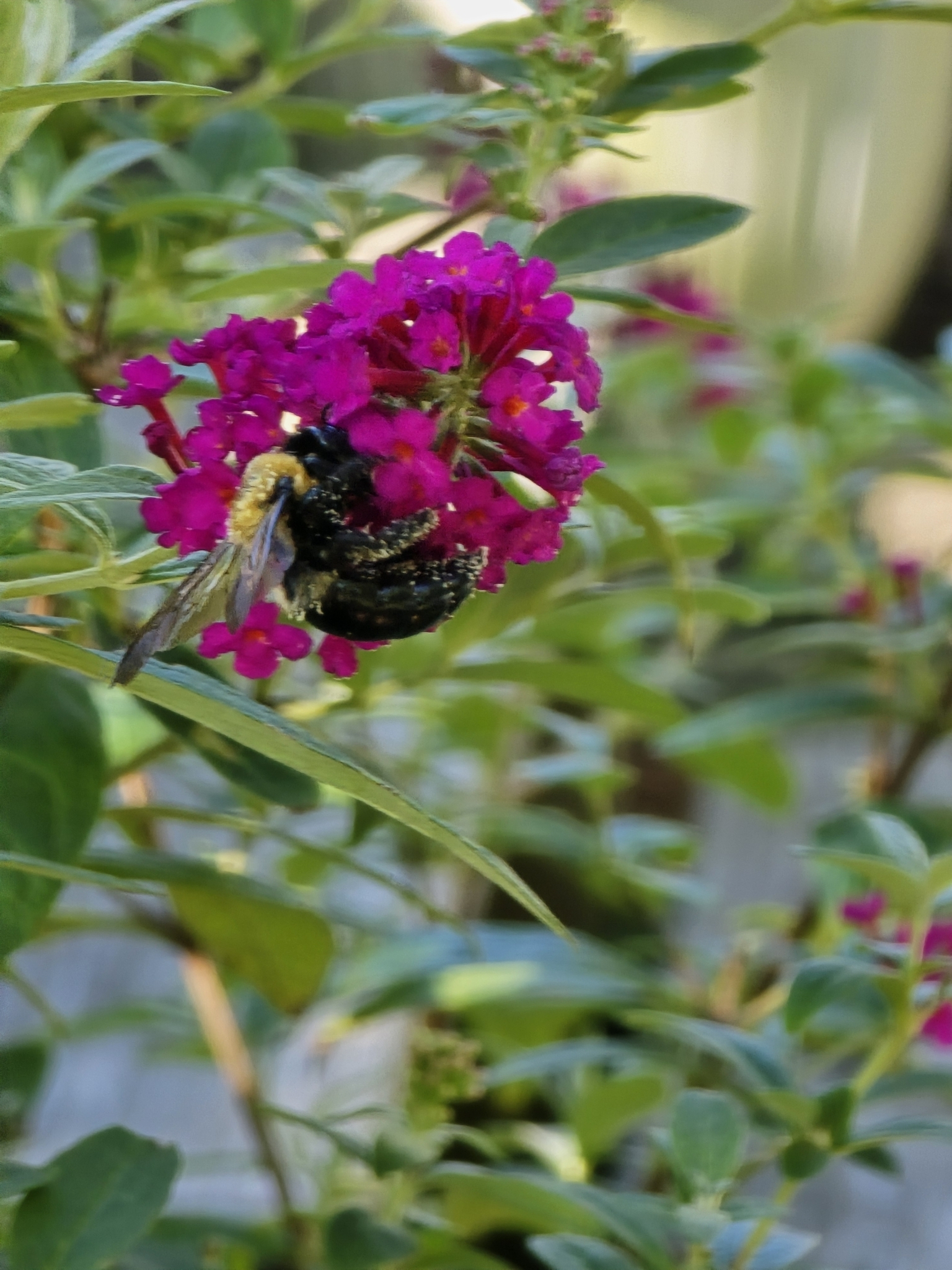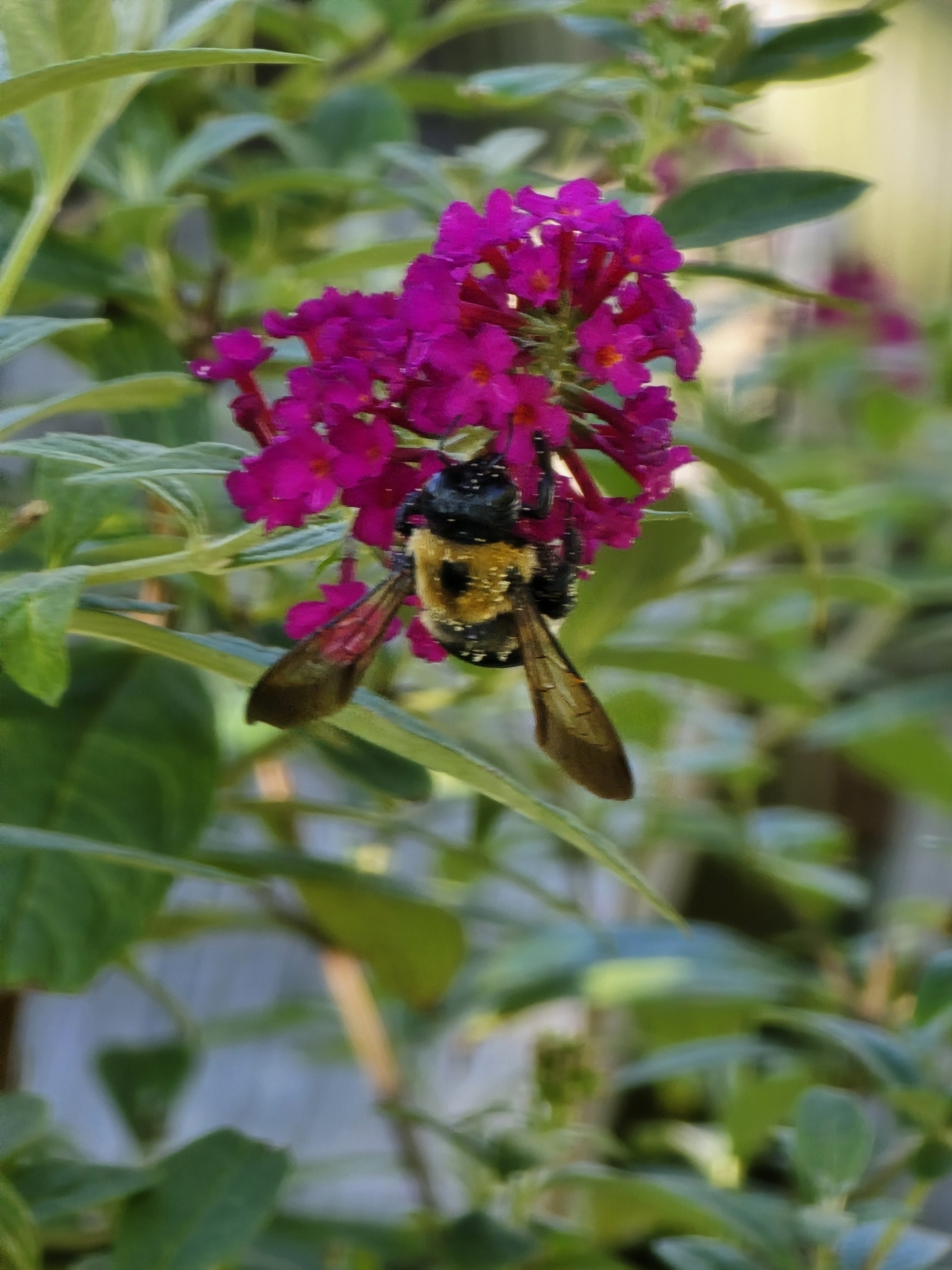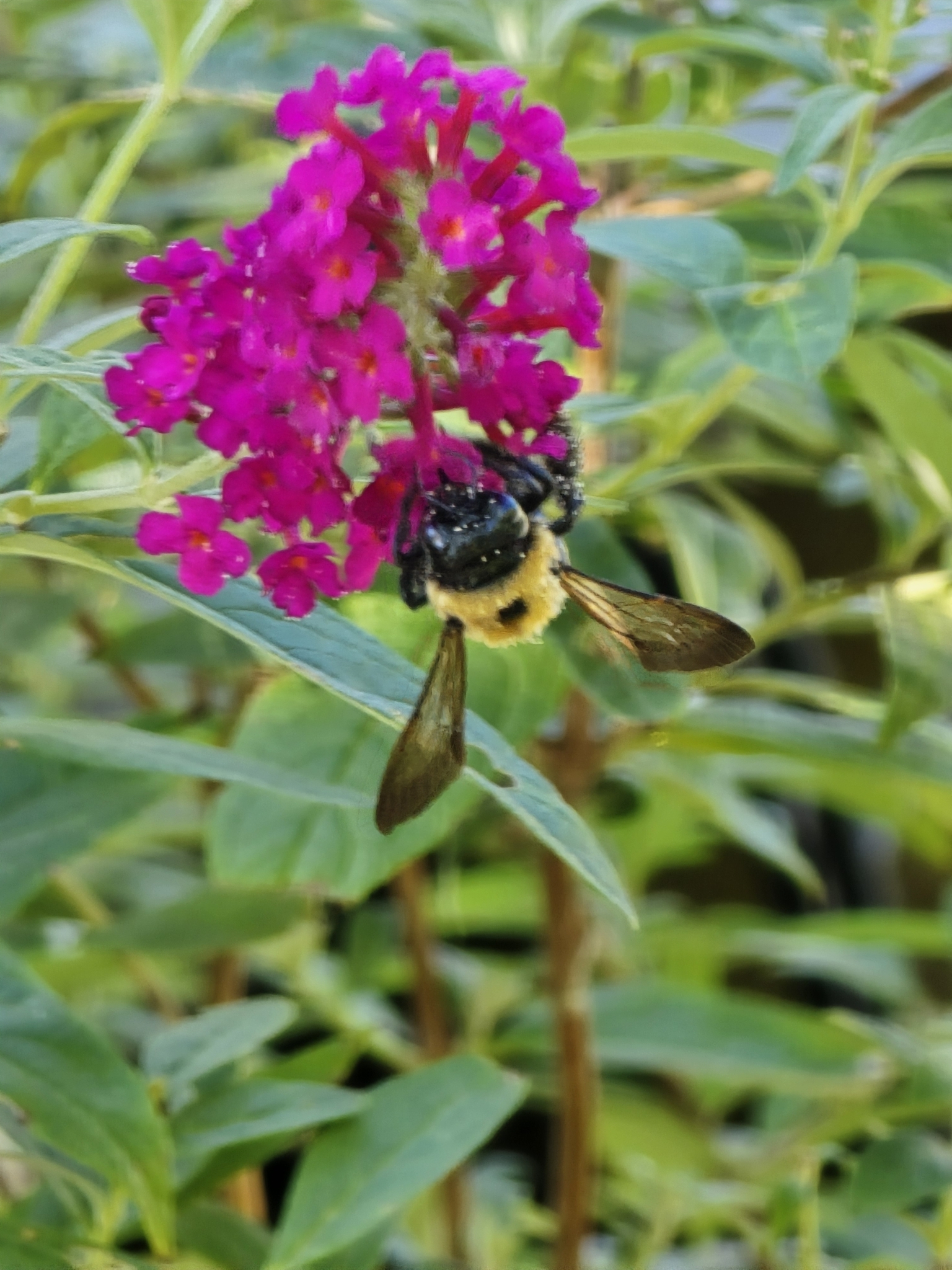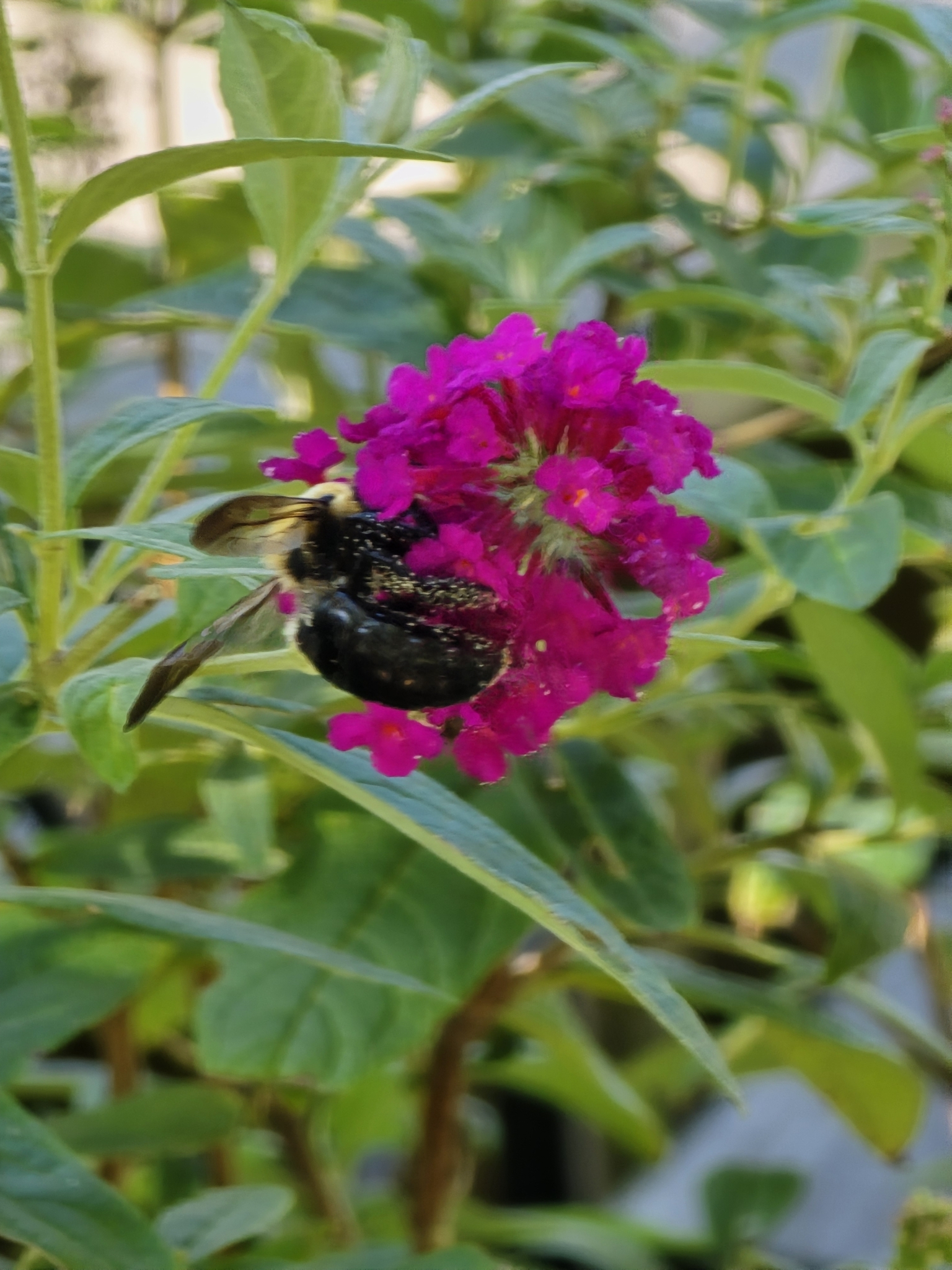 Xylocopa virginica | species | Buddleja davidii | species | eats | Animalia | Arthropoda | Insecta | Hymenoptera | Apidae | Xylocopa | Plantae | Tracheophyta | Magnoliopsida | Lamiales | Scrophulariaceae | Buddleja | 42.401072 | -83.306463 | 2024 | 9 | 21 | http://creativecommons.org/licenses/by-nc/4.0/ | https://www.inaturalist.org/observations/246271647 | |