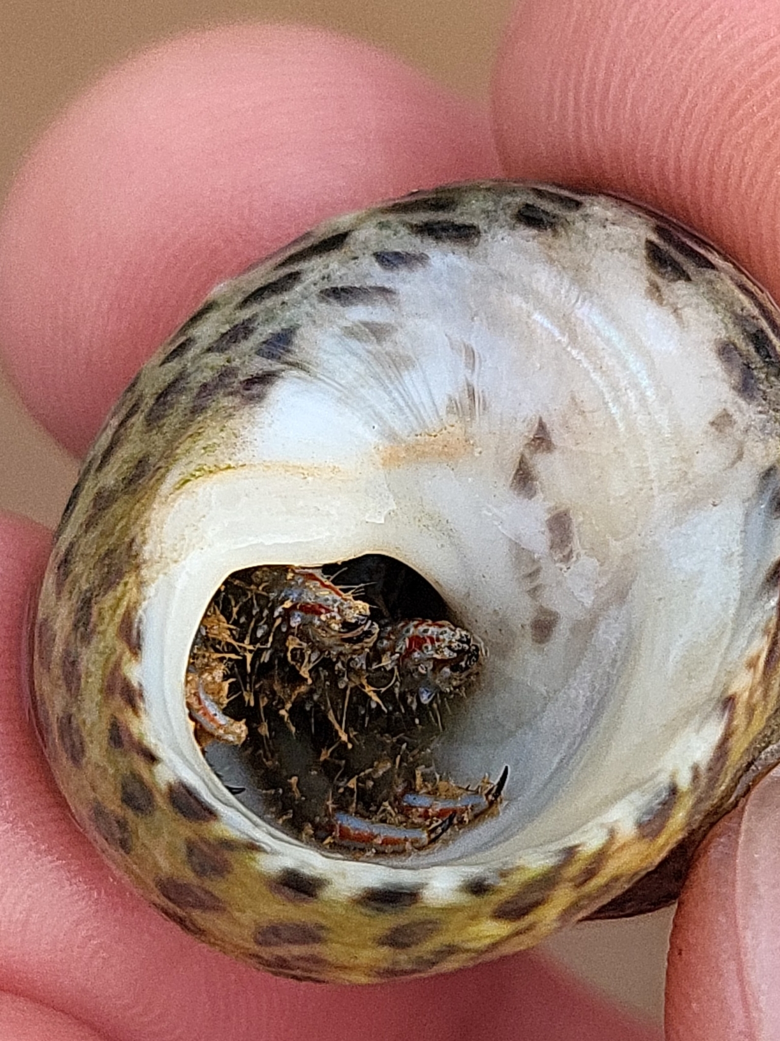 Clibanarius erythropus | species | Phorcus turbinatus | species | interactsWith | Animalia | Arthropoda | Malacostraca | Decapoda | Diogenidae | Clibanarius | Animalia | Mollusca | Gastropoda | Trochida | Trochidae | Phorcus | 44.13239 | 15.070626 | 2024 | 10 | 7 | http://creativecommons.org/licenses/by-nc/4.0/ | https://www.inaturalist.org/observations/246285857 | |