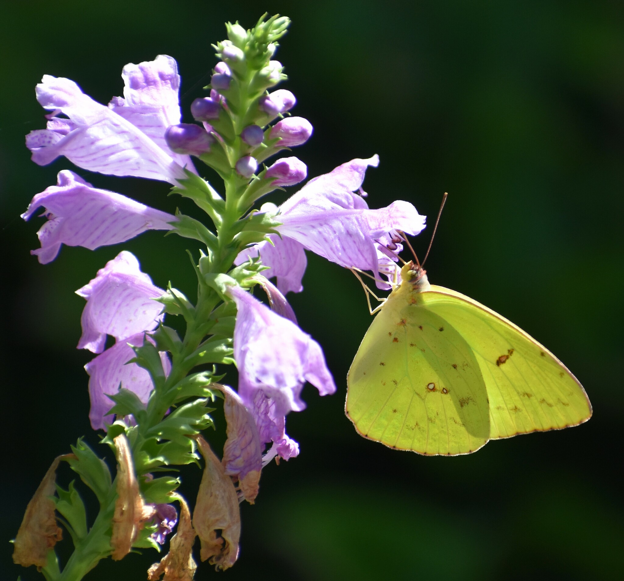 Phoebis sennae | species | Physostegia virginiana | species | visitsFlowersOf | Animalia | Arthropoda | Insecta | Lepidoptera | Pieridae | Phoebis | Plantae | Tracheophyta | Magnoliopsida | Lamiales | Lamiaceae | Physostegia | 32.72654 | -79.954962 | 2024 | 9 | 30 | http://creativecommons.org/licenses/by-nc/4.0/ | https://www.inaturalist.org/observations/246293890 | |