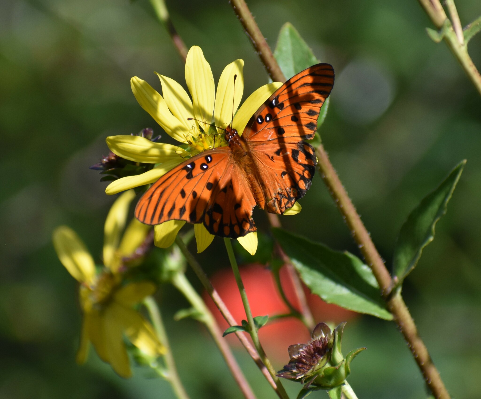 Dione vanillae | species | Silphium asteriscus | species | visits | Animalia | Arthropoda | Insecta | Lepidoptera | Nymphalidae | Dione | Plantae | Tracheophyta | Magnoliopsida | Asterales | Asteraceae | Silphium | 32.72654 | -79.954962 | 2024 | 10 | 7 | http://creativecommons.org/licenses/by-nc/4.0/ | https://www.inaturalist.org/observations/246293903 | |