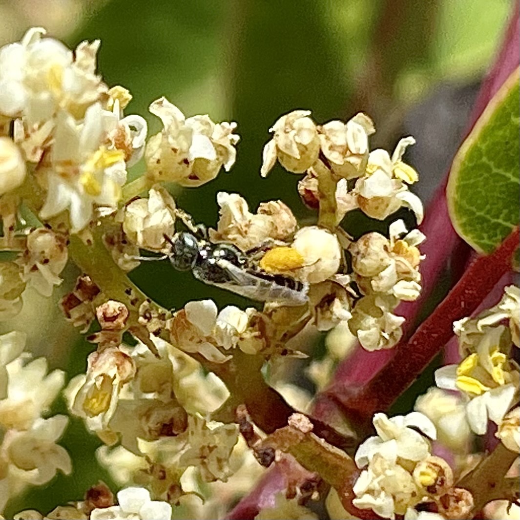 Perdita rhois | species | Malosma laurina | species | visitsFlowersOf | Animalia | Arthropoda | Insecta | Hymenoptera | Andrenidae | Perdita | Plantae | Tracheophyta | Magnoliopsida | Sapindales | Anacardiaceae | Malosma | 32.845867 | -117.172172 | 2021 | 6 | 9 | http://creativecommons.org/licenses/by-nc/4.0/ | https://www.inaturalist.org/observations/82378251 | |