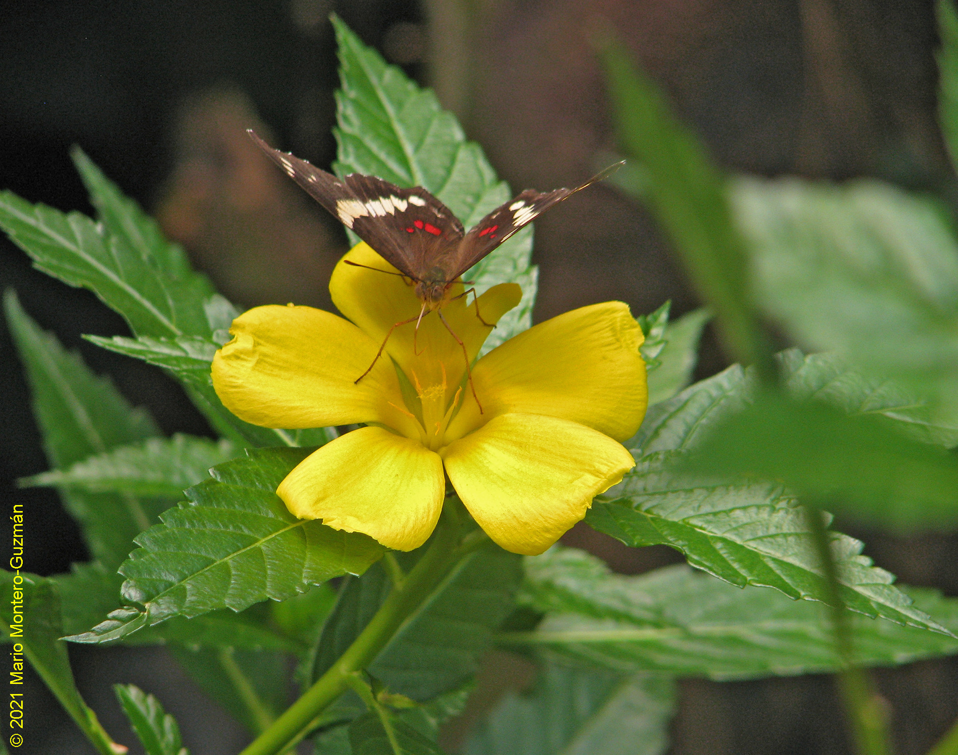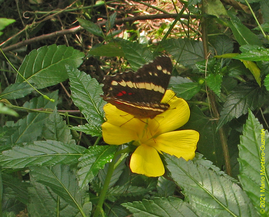 Anartia fatima | species | Turnera ulmifolia | species | visitsFlowersOf | Animalia | Arthropoda | Insecta | Lepidoptera | Nymphalidae | Anartia | Plantae | Tracheophyta | Magnoliopsida | Malpighiales | Turneraceae | Turnera | 10.213774 | -83.789787 | 2021 | 5 | 1 | http://creativecommons.org/licenses/by-nc/4.0/ | https://www.inaturalist.org/observations/78022720 | |